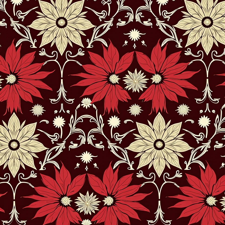 Poinsettia Bloom Botanical Print with Seasonal Flower Arrangements(Red)
