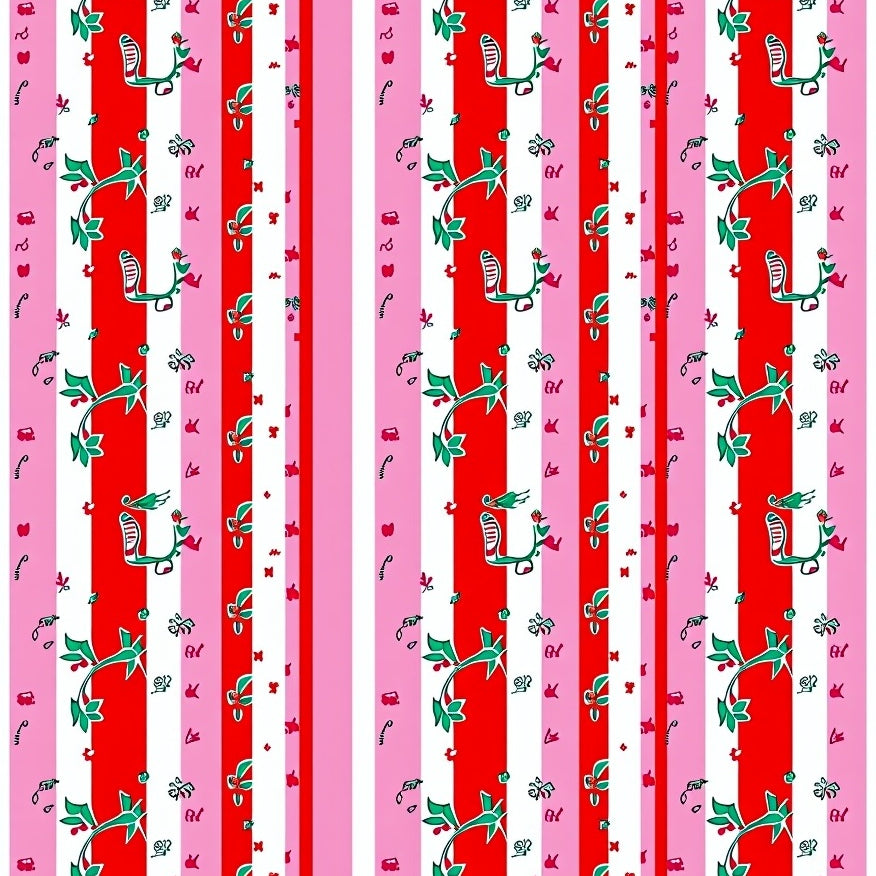 Whimsical Cane Stripe with Delicate Holly Leaf Accents(Red)