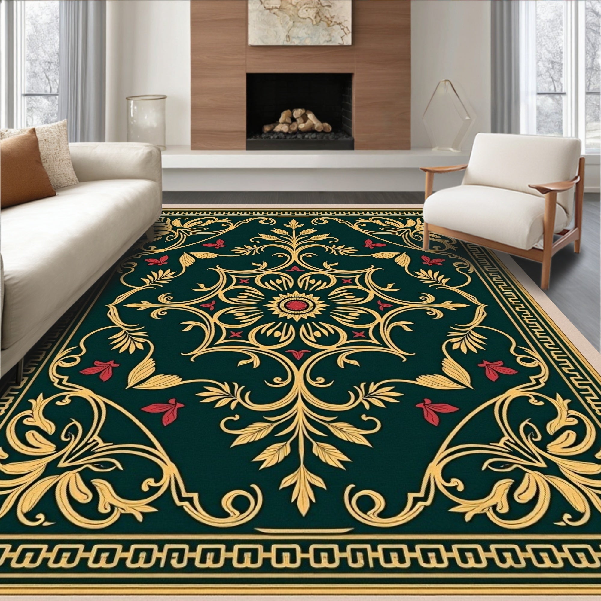 Moody Art Nouveau Floral Medallion with Vintage Scrollwork Accents(Green)