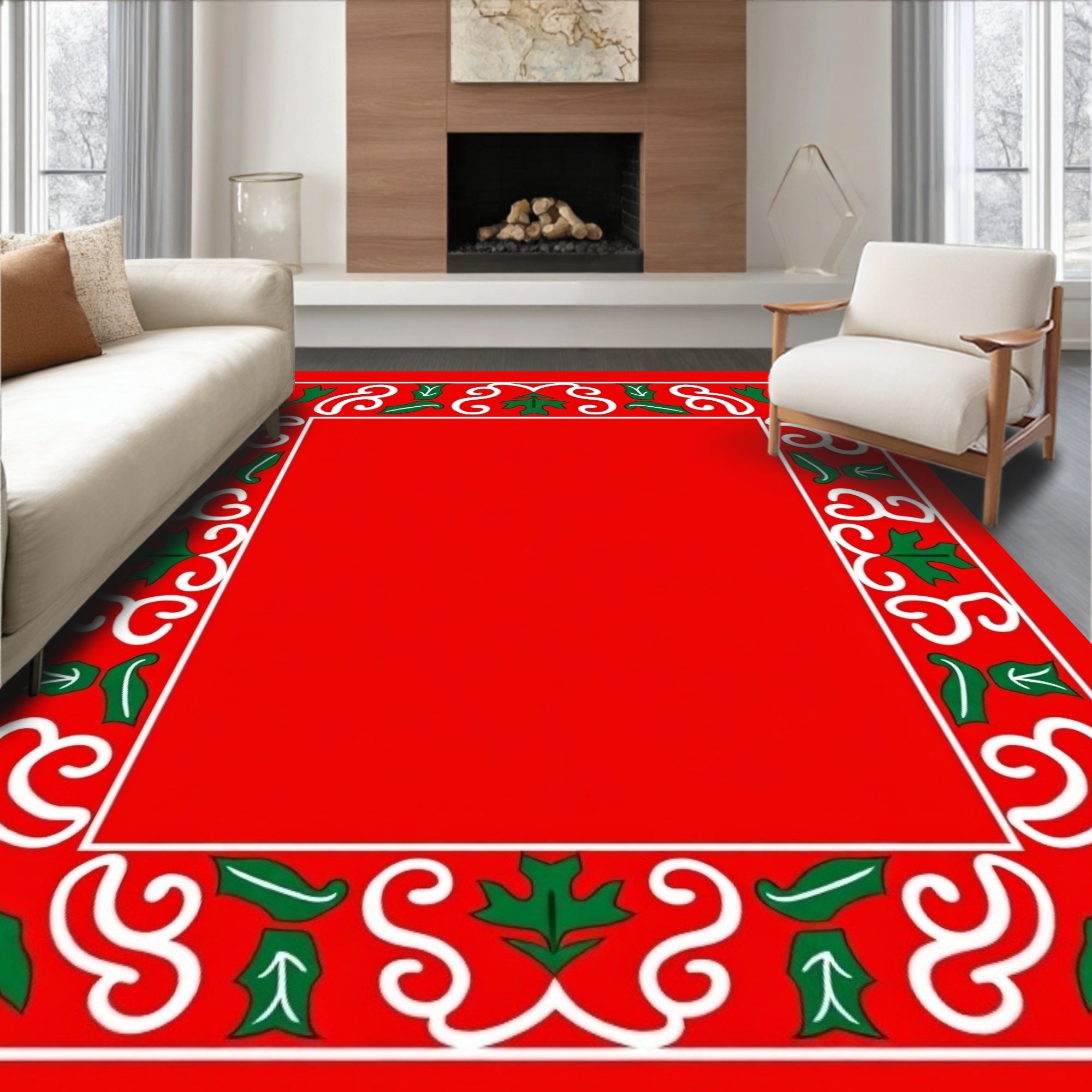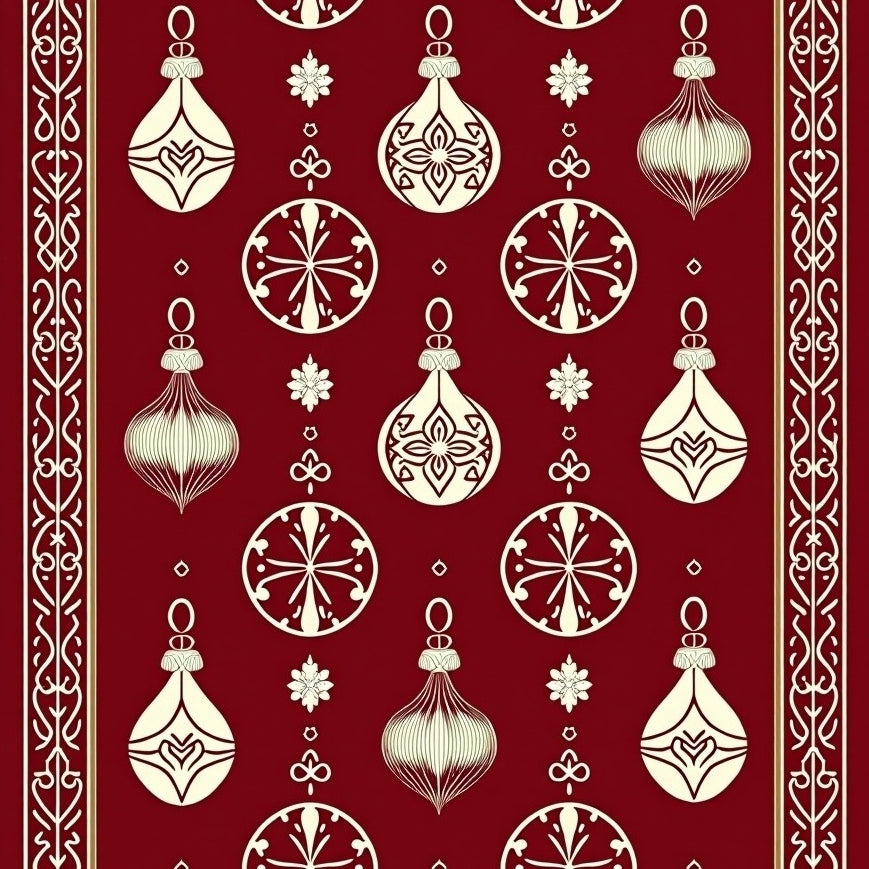 Elegant Wreath and Pinecone Motif with Interlocking Festive Vines(Red)