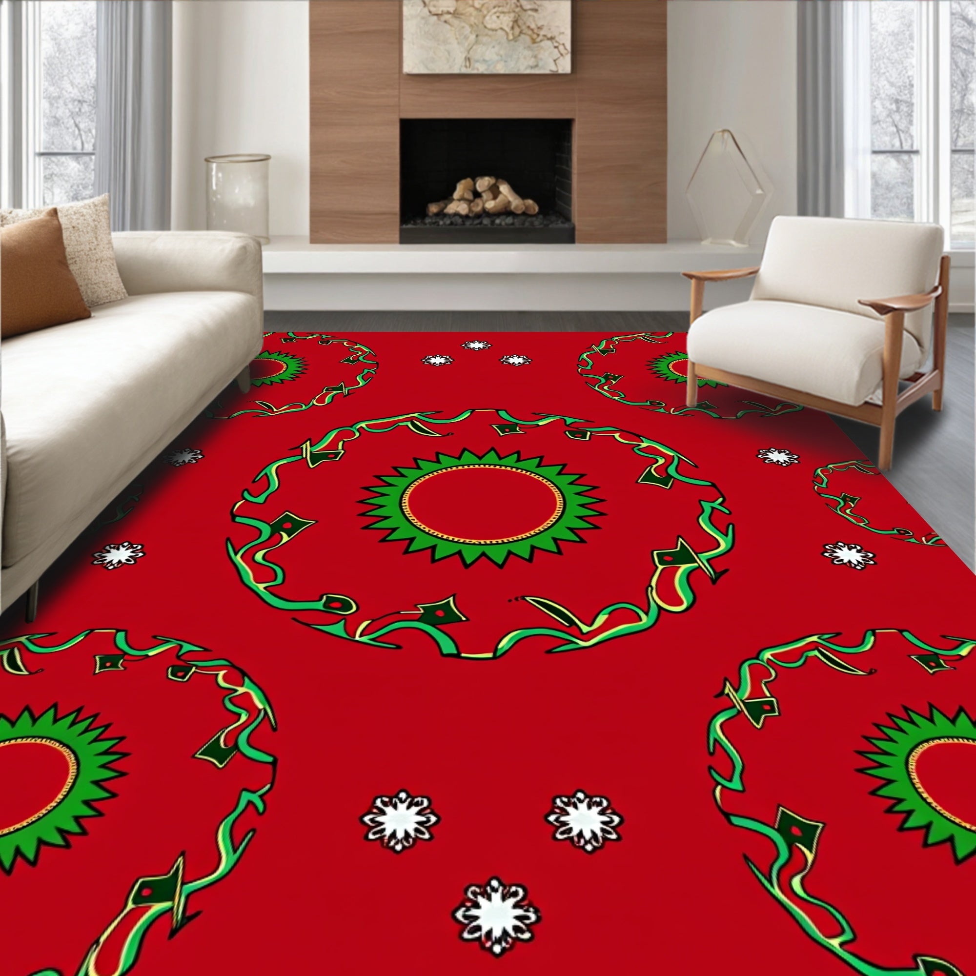 Winter Snowflake Medallion with Crystalline Motifs(Red)
