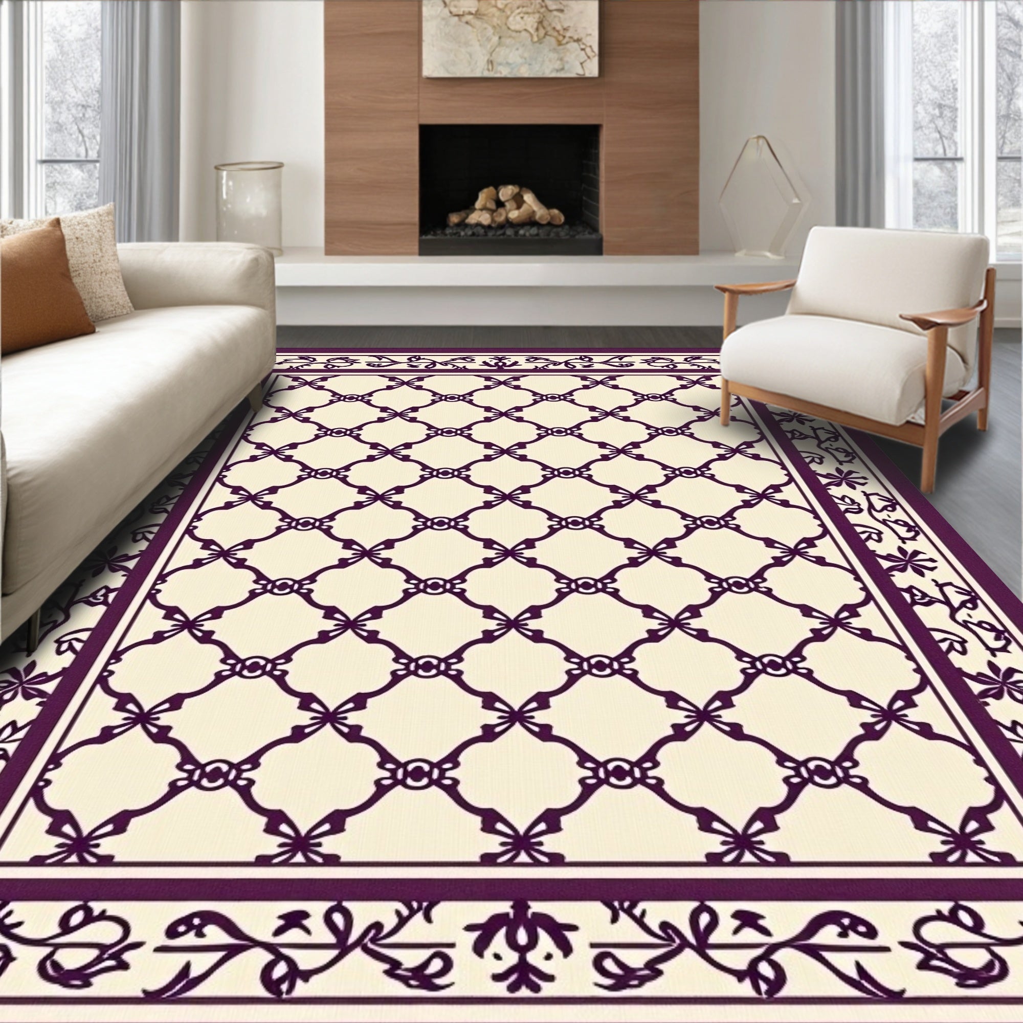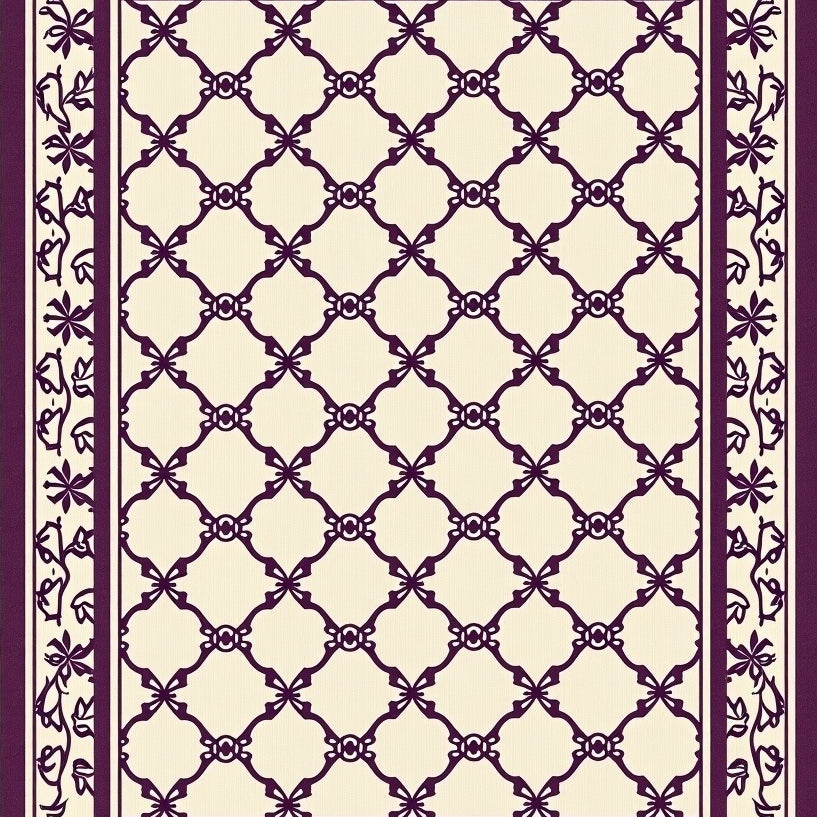 Plum Trellis with Stylized Leaf and Vine Details(Purple)