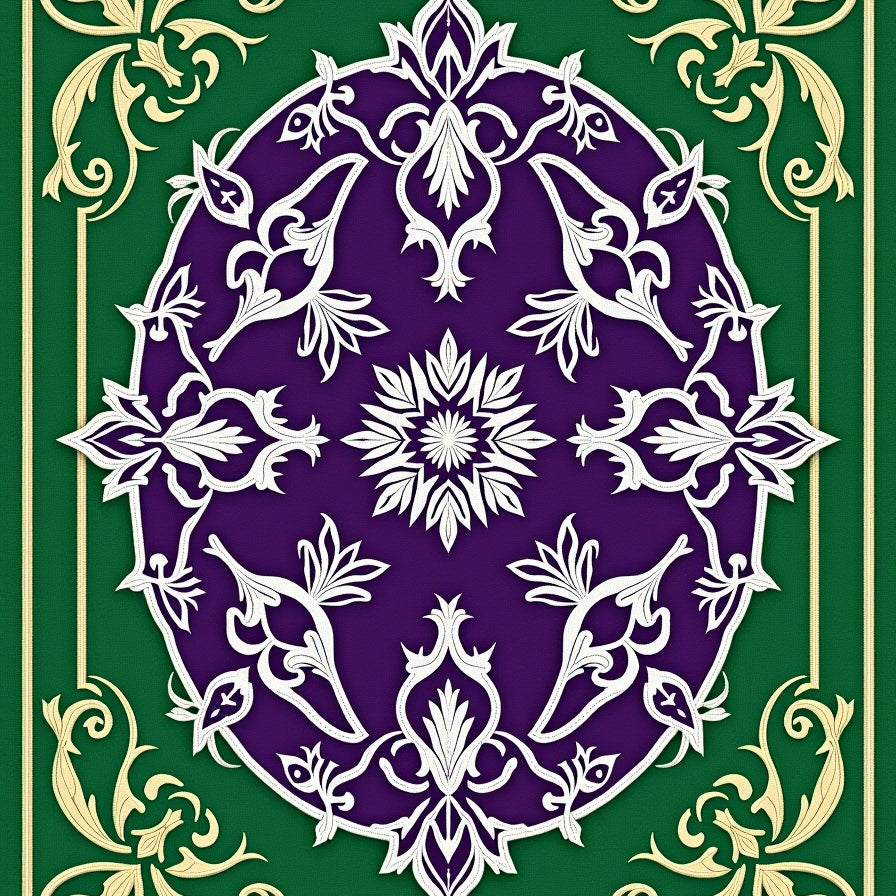 Ornate Tapestry Design with Intricate Floral Motifs(Green)