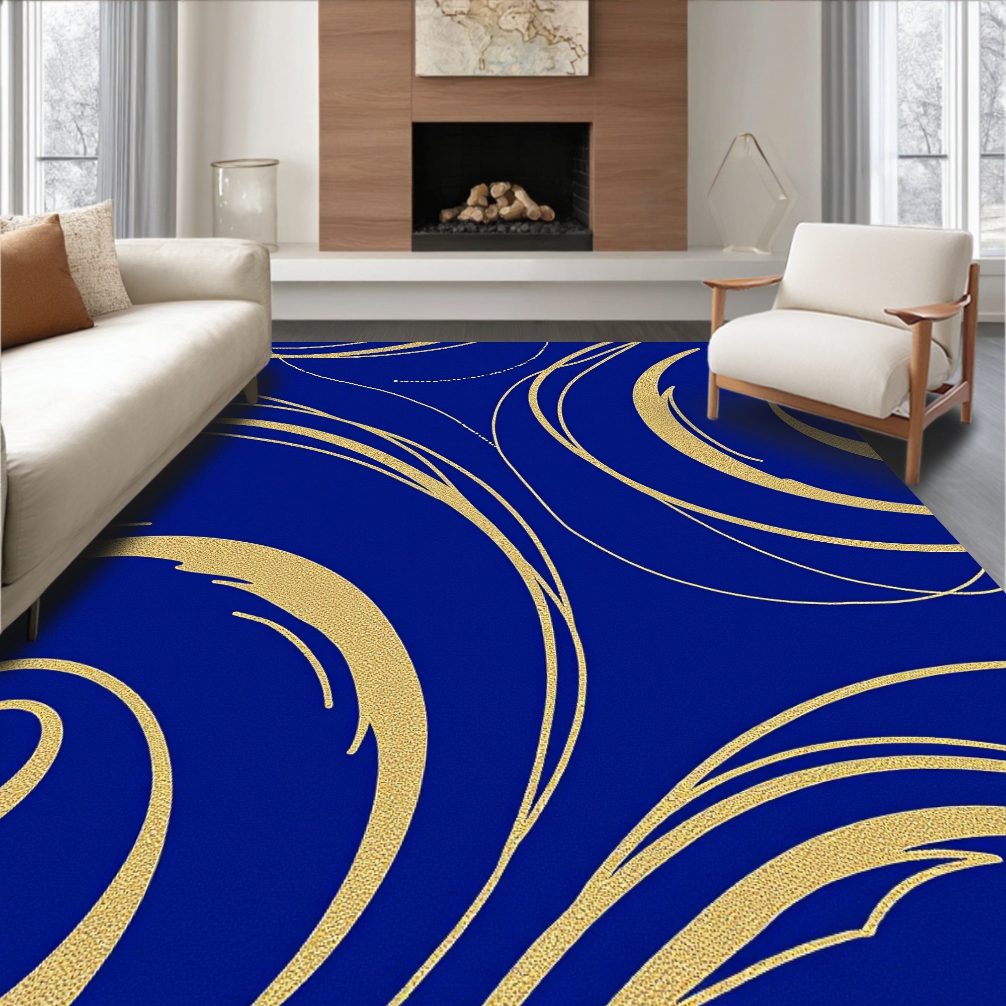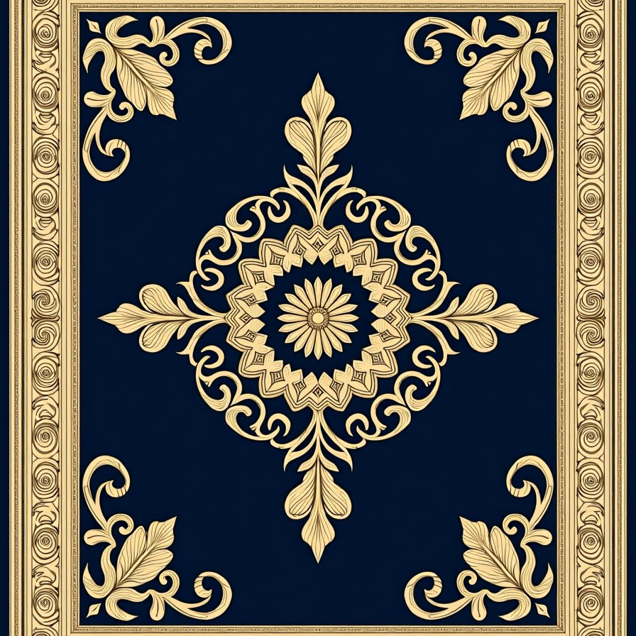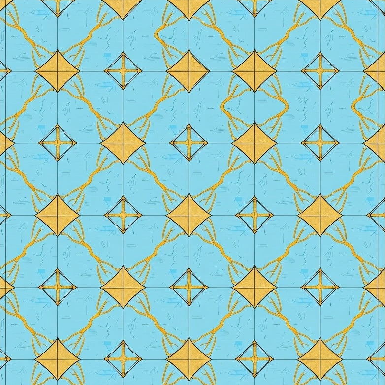 Elegant Interlocking Marble Motifs Highlighted By Gleaming Gold Highlights(Blue)