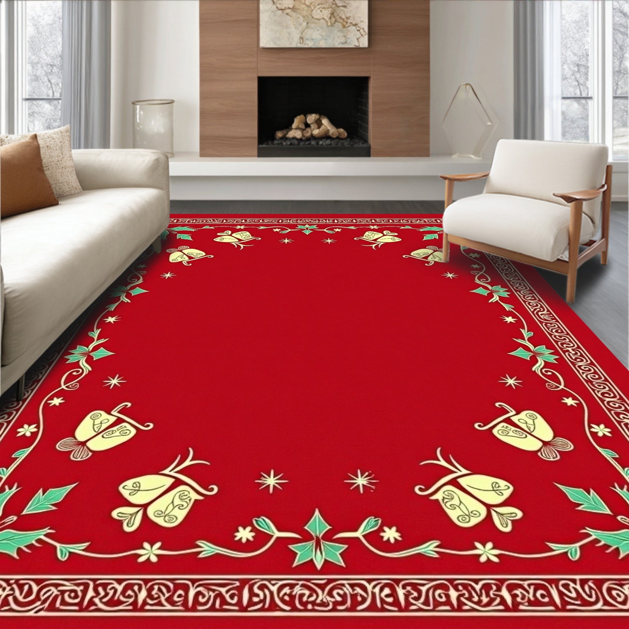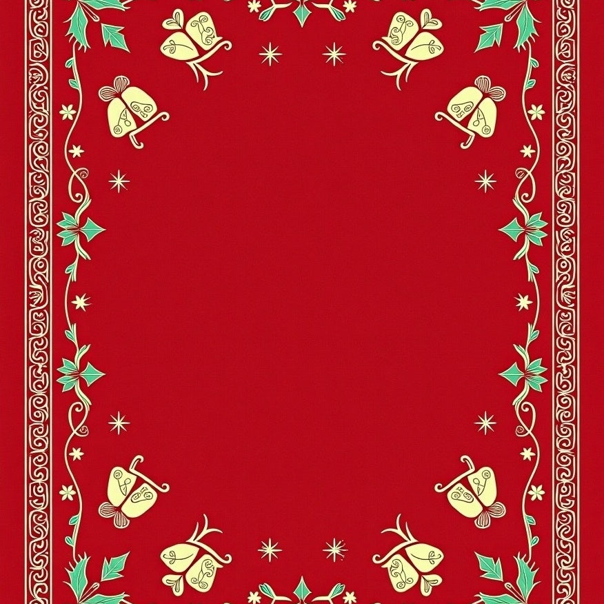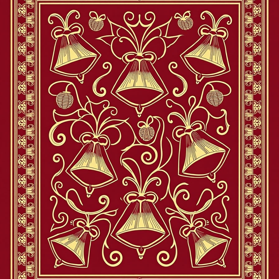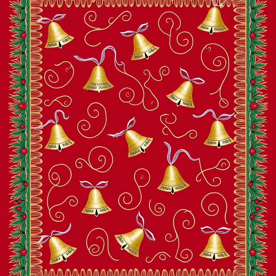 Festive Bell Motif with Holly Leaves and Snowflake Accents Design(Red)