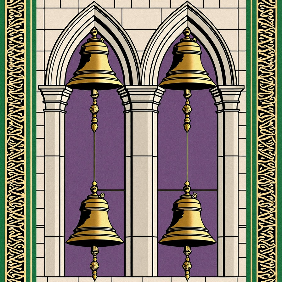 Elegant Cathedral Bell Tower Half Moon Entrance with Gothic Arches(Gold)