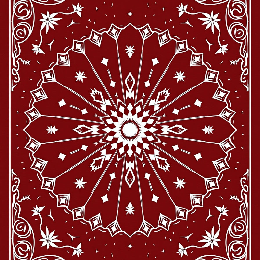 Folk Starburst Medallion Interlocking with Winter Botanical Scrolls(Red)