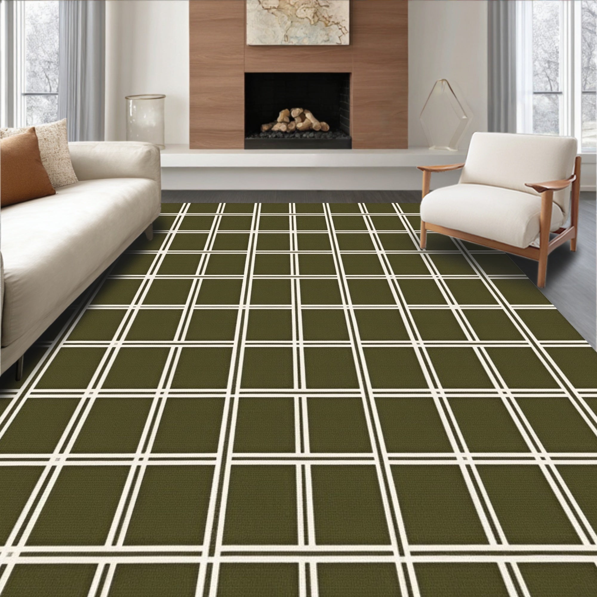 Midcentury Mod Plaid Interlock Featuring Minimalist Check Motifs(Olive)