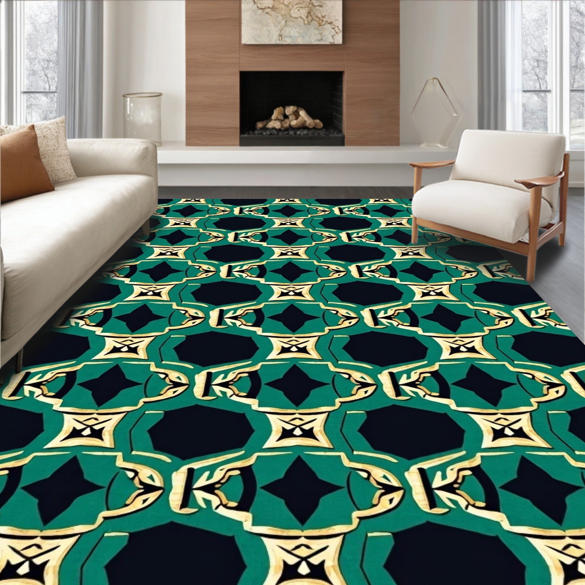 Abstract Bauhaus Inspired Checkerboard Floor Covering(Green)