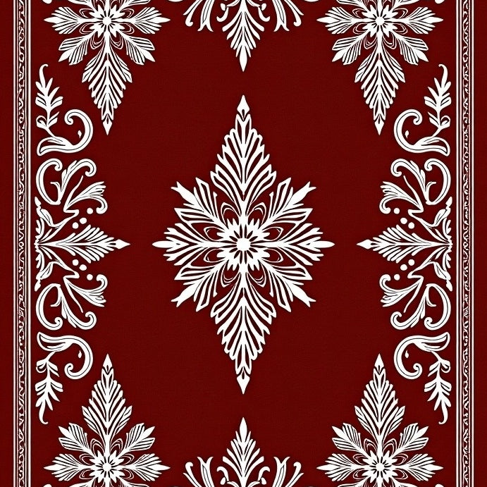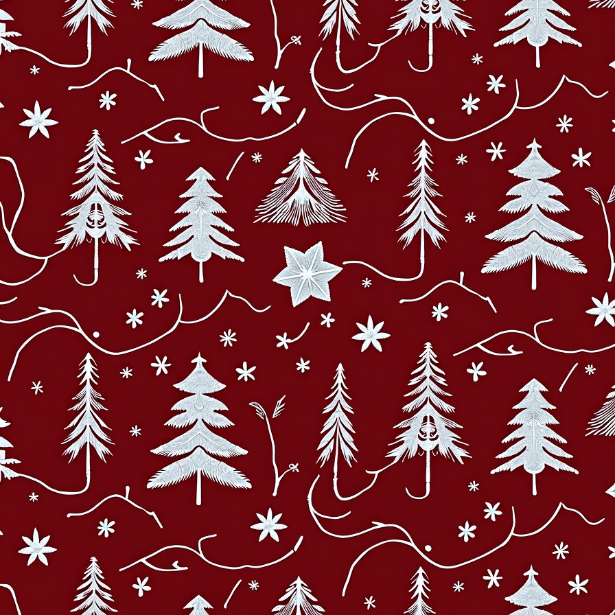 Nordic Pine and Snow Blossom Motif with Festive Scrollwork(Red)