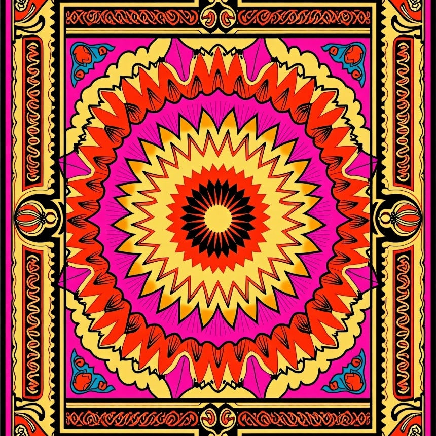 Vibrant Sunset Tapestry Arabesque Starburst(Pink)