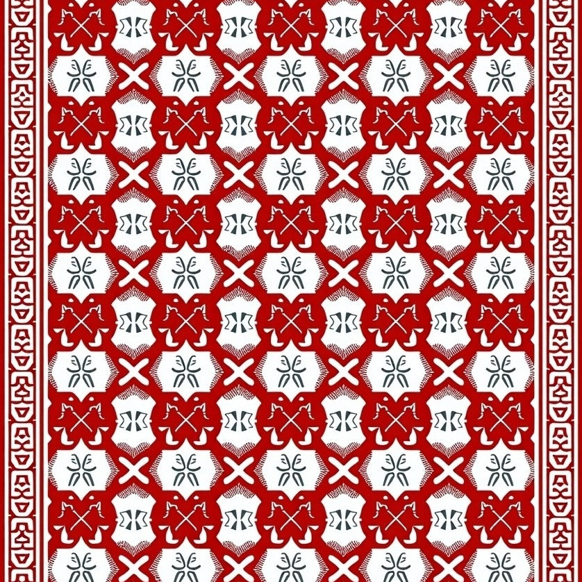 Nordic Inspired Interlocking Plaid with Starburst Detailing(Red)
