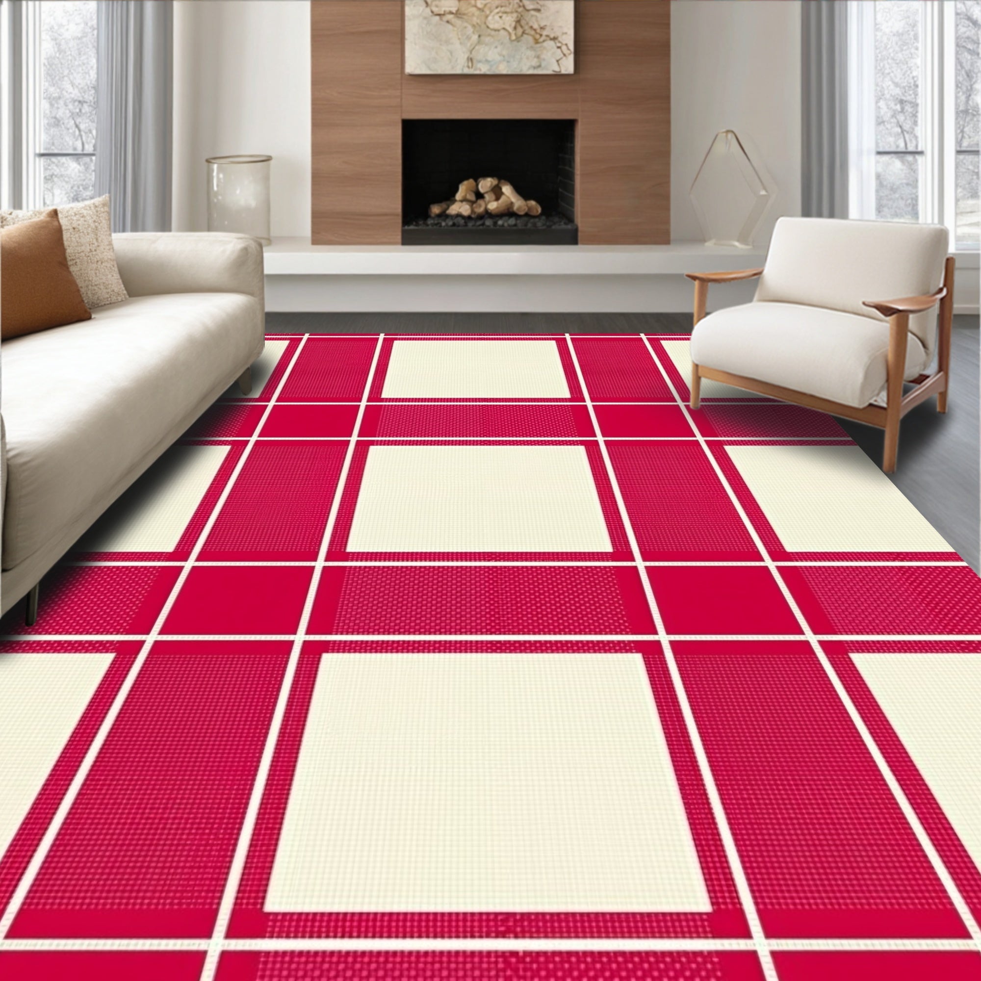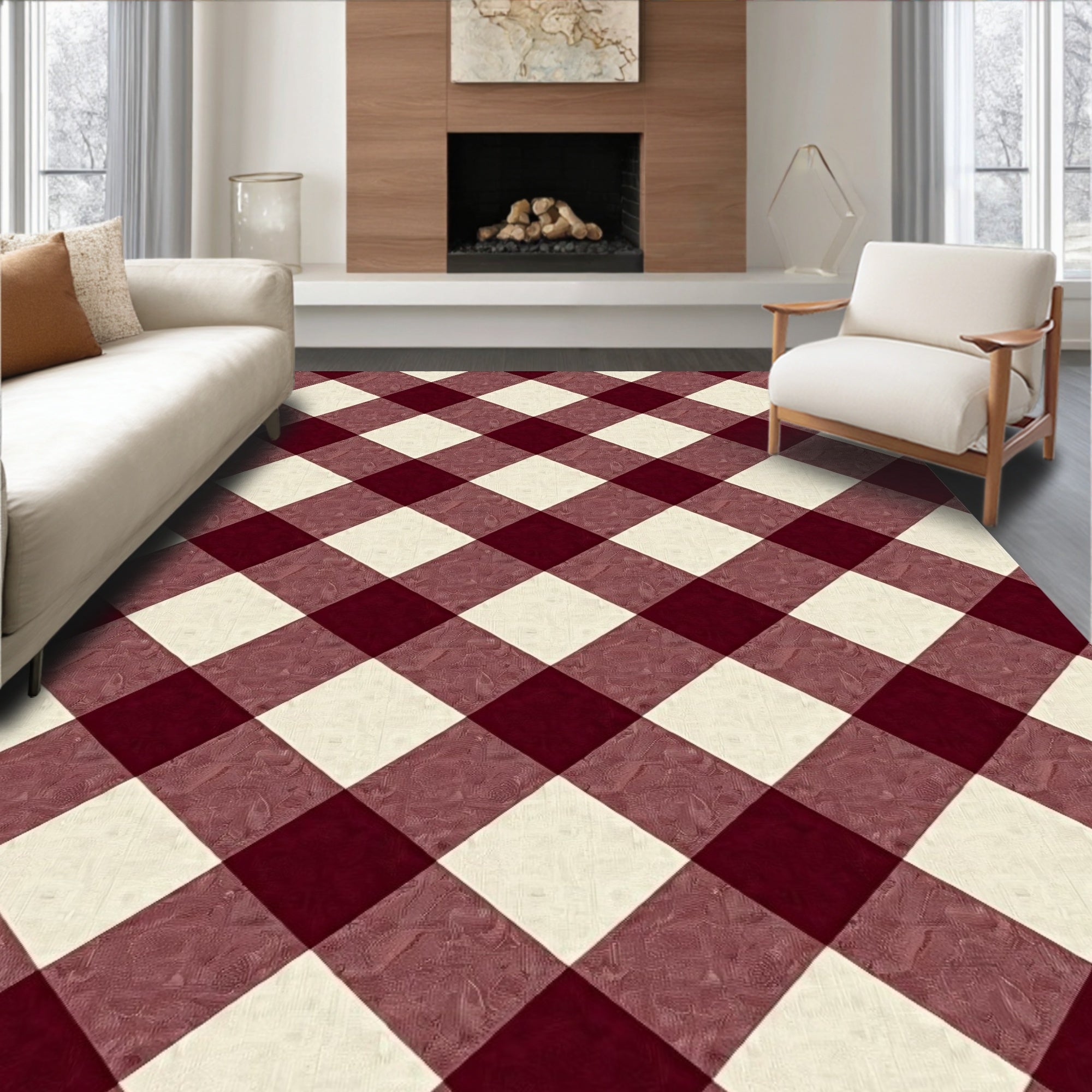 Farmhouse Gingham Yuletide Decorative Floor Covering(Red)