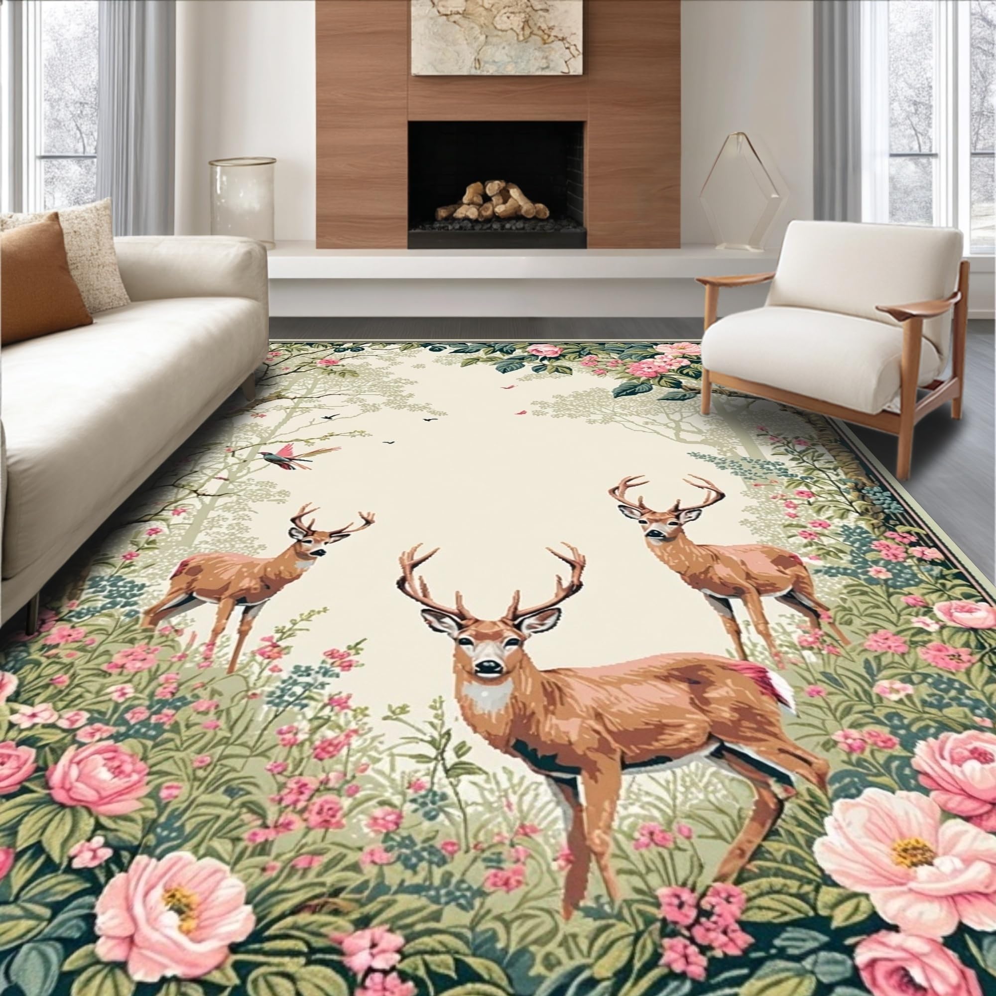 Rustic Floral Deer Motif(Brown)