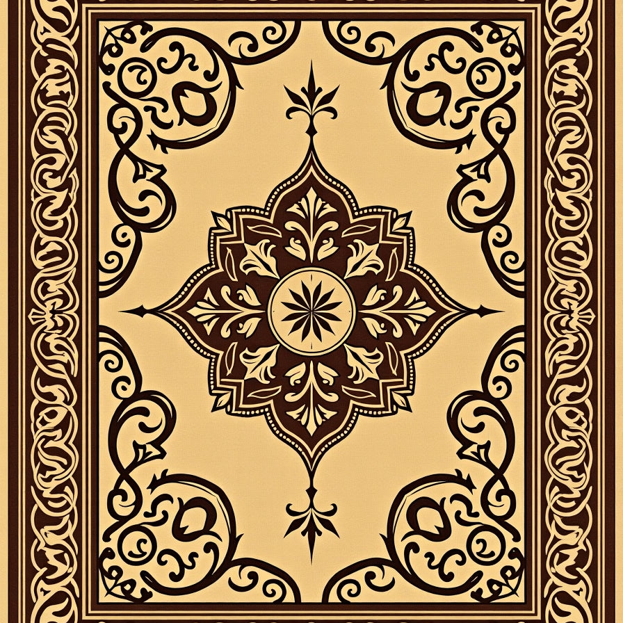 Burst Symmetrical Medallion with Ornate Floral(Brown)