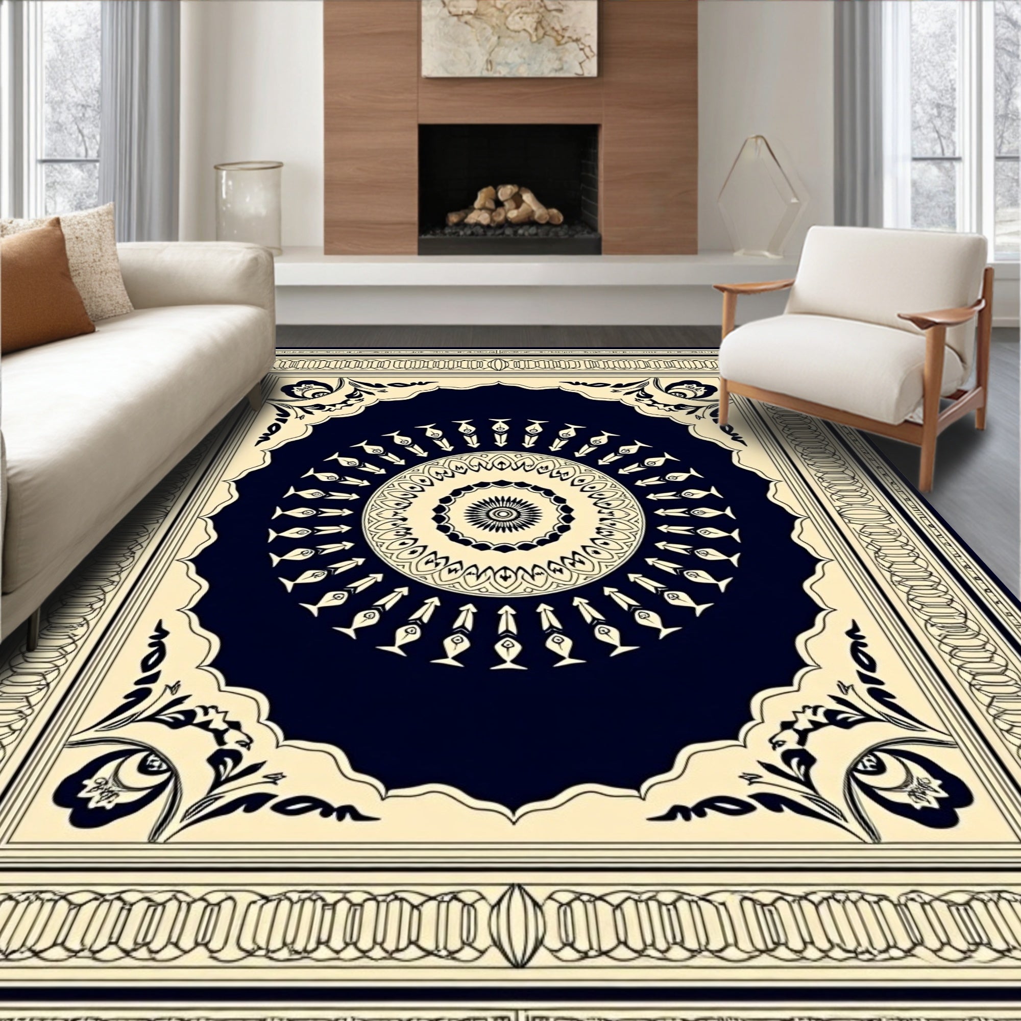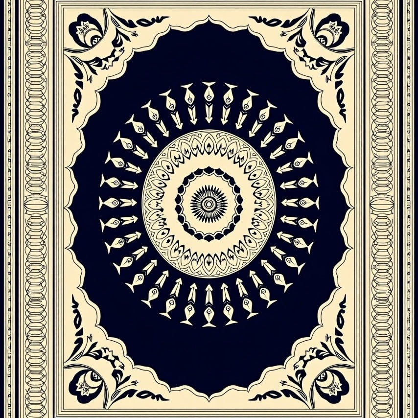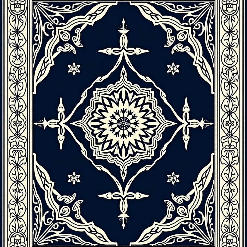 Ornate Medallion Motif with Intricate Border Framework Design(Navy)
