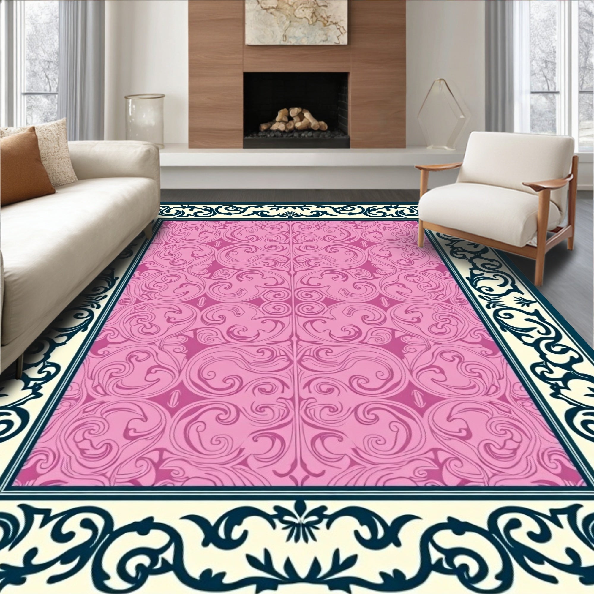 Vintage Damask Scrollwork Tapestry Design with Classical Motifs(Pink)