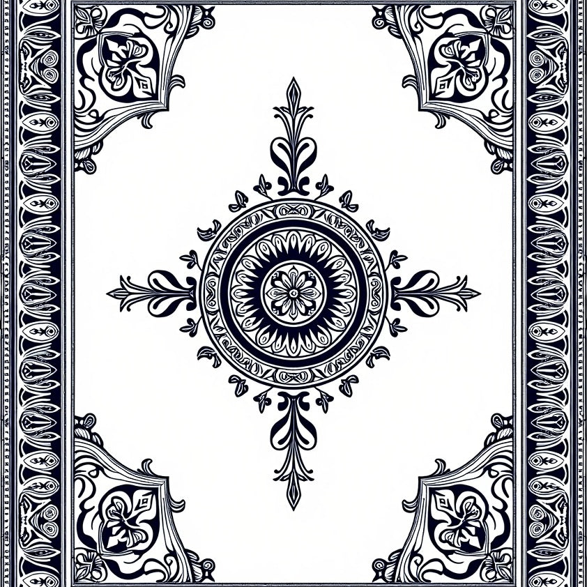 Style Featuring Ornate Medallion with Interlocking Flourishes(Black)