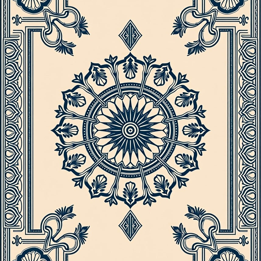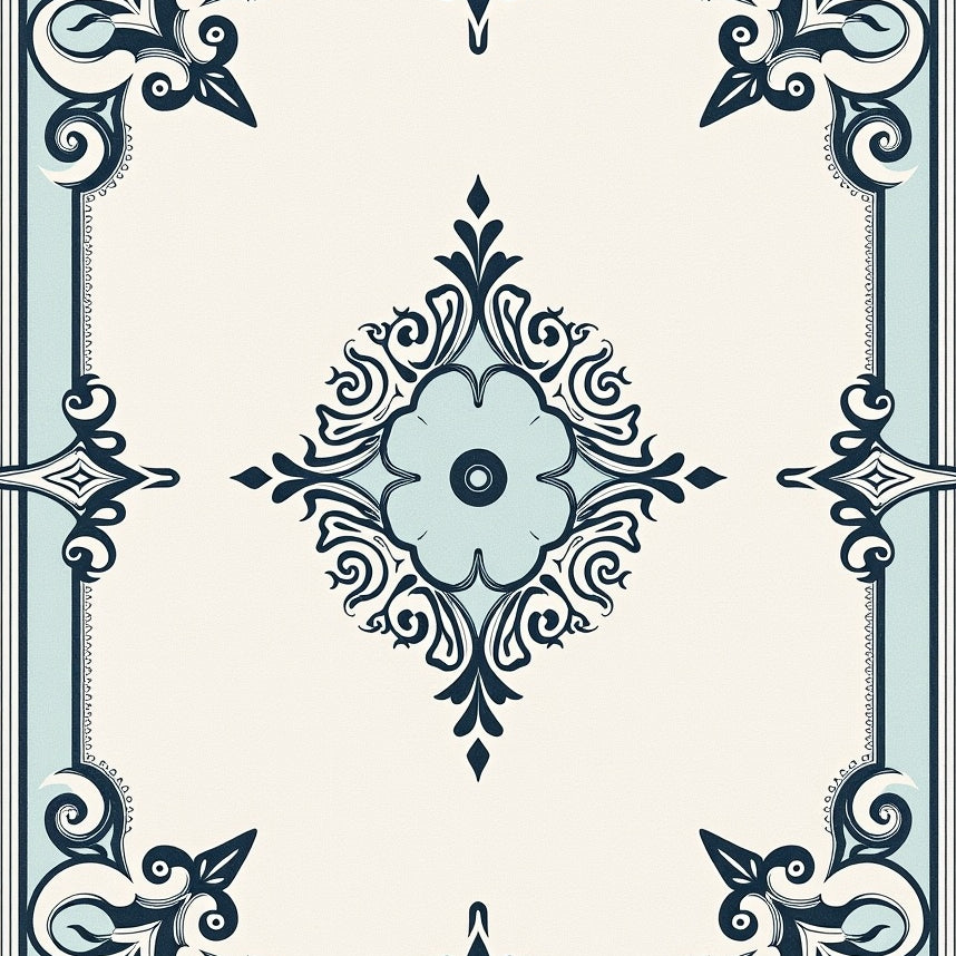 Classic Rosette Center with Scrollwork Border Detailing(Blue)