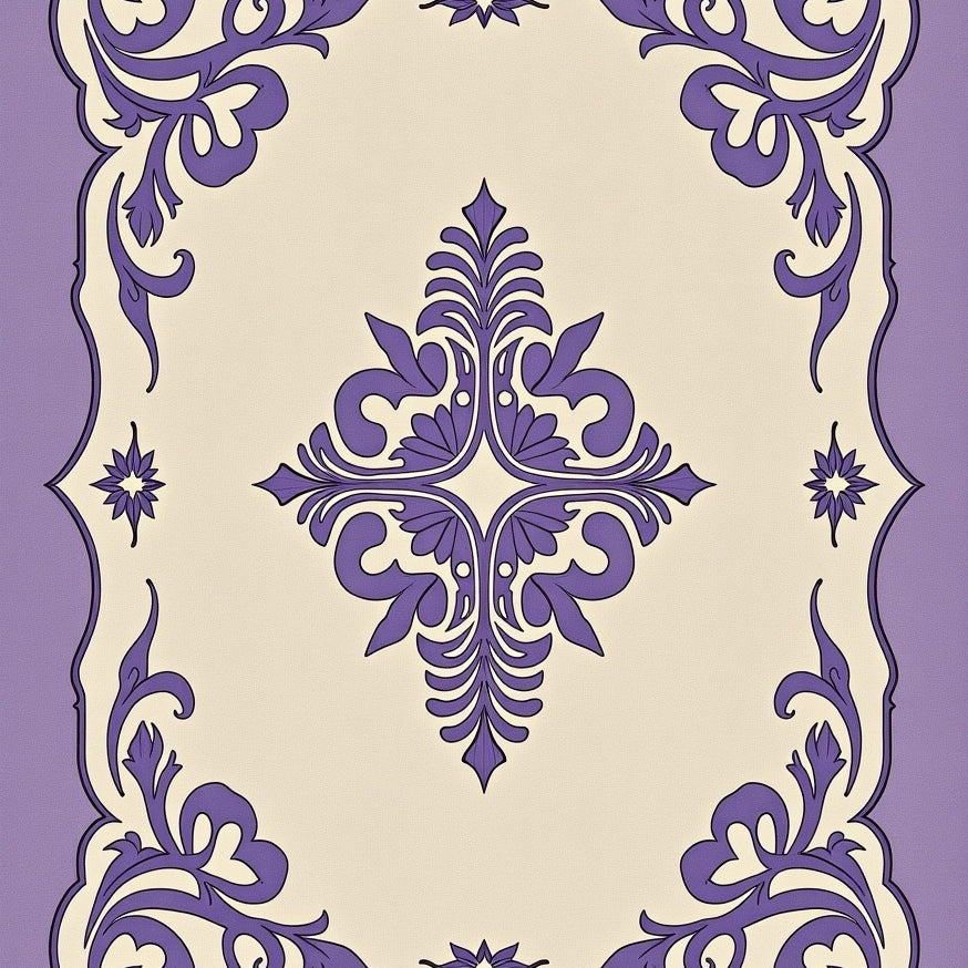 Celestial Medallion Motif with Botanical Scrollwork Accents(Purple)