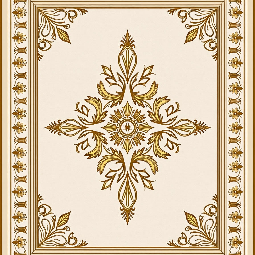 Vintage Distressed Ornamental Design with Central Burst(Beige)