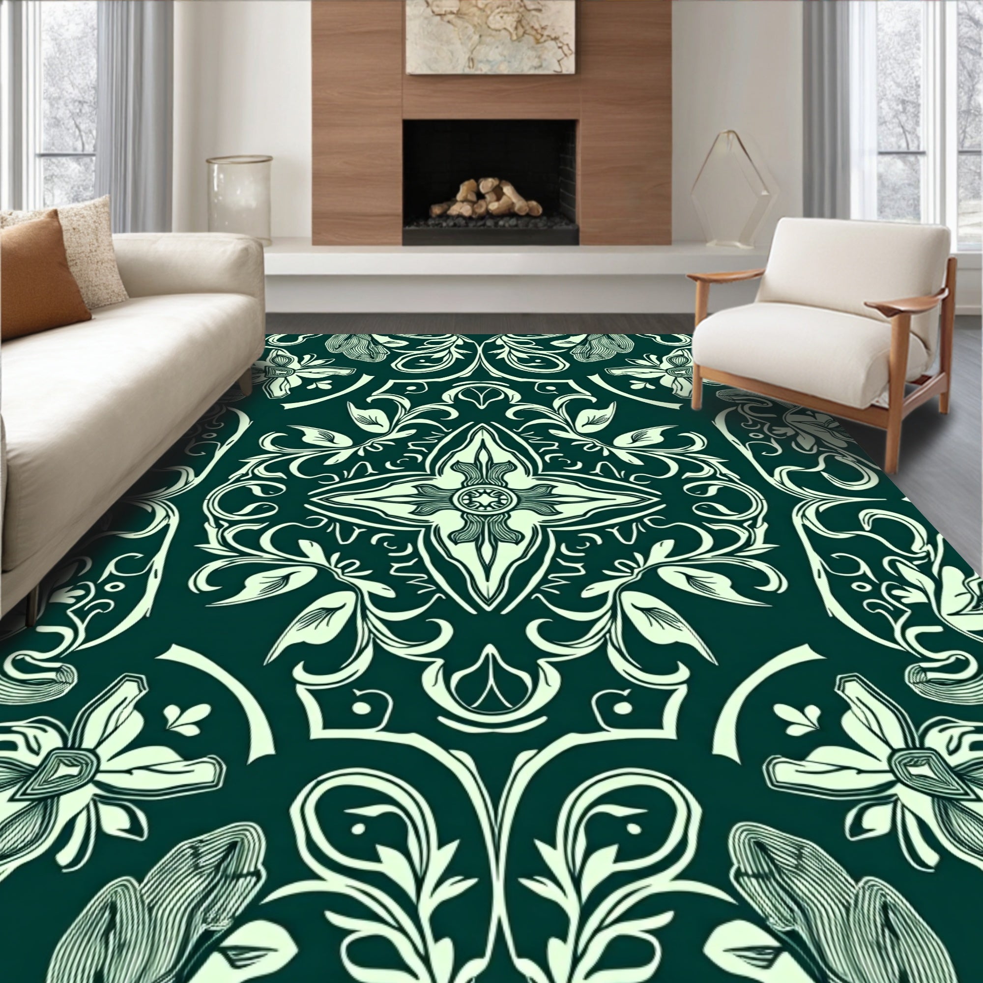 Blooming Meadow Floral Tapestry With Elegant Botanical Motifs(Green)