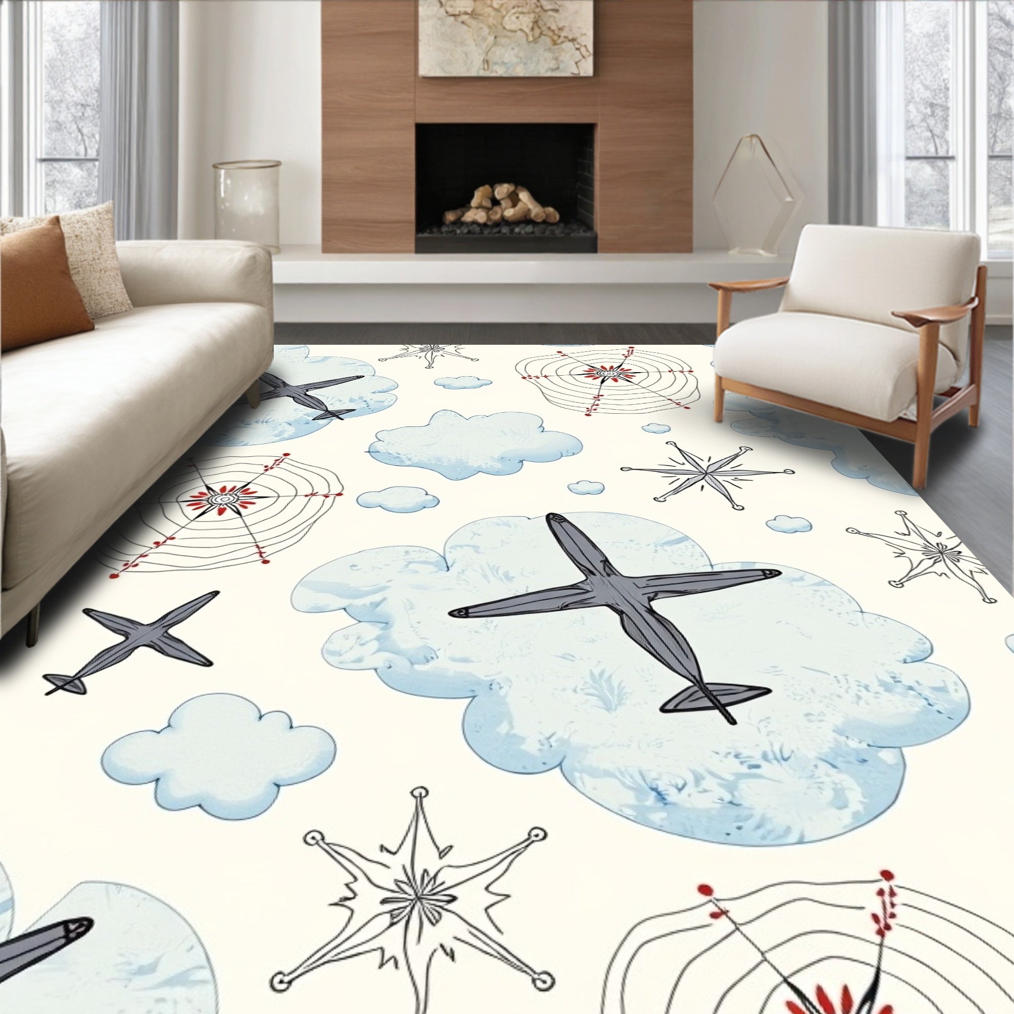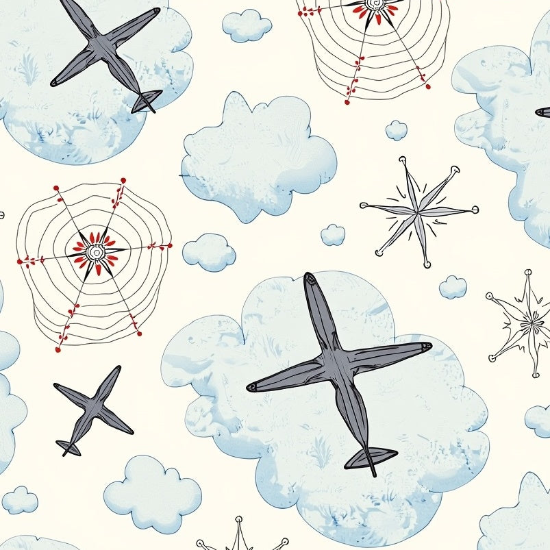 Aviation Journey Sky Map Featuring Cloud Navigation Flight Routes(Light Blue)
