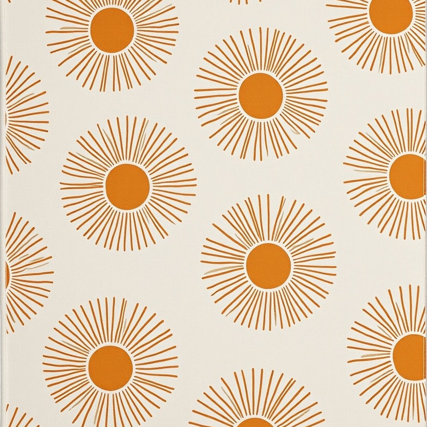 Celestial Mosaic Featuring Radiating Sunburst Motifs(Orange)
