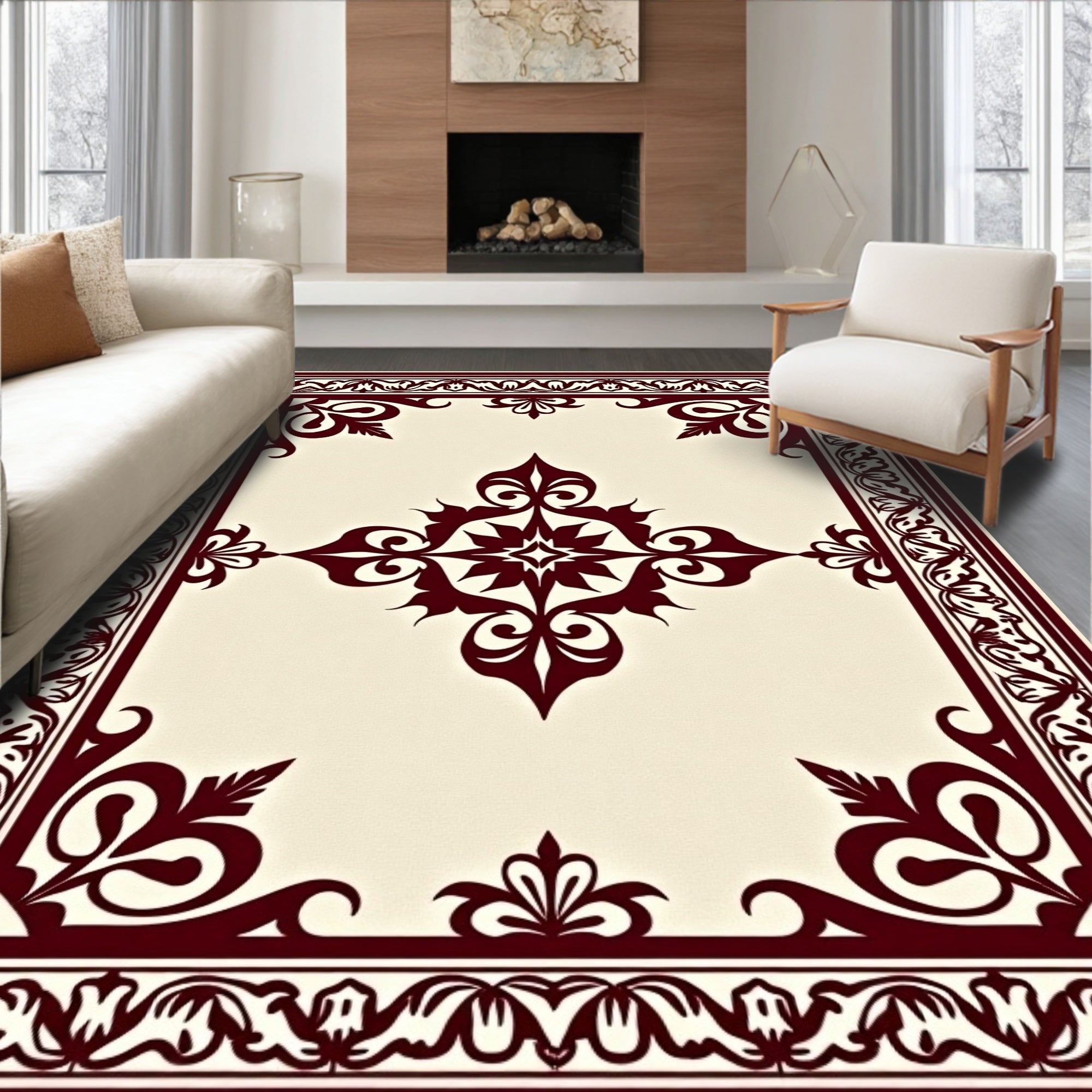 Vintage Distressed Medallion Floral Ornate Heritage Elegant(Red)