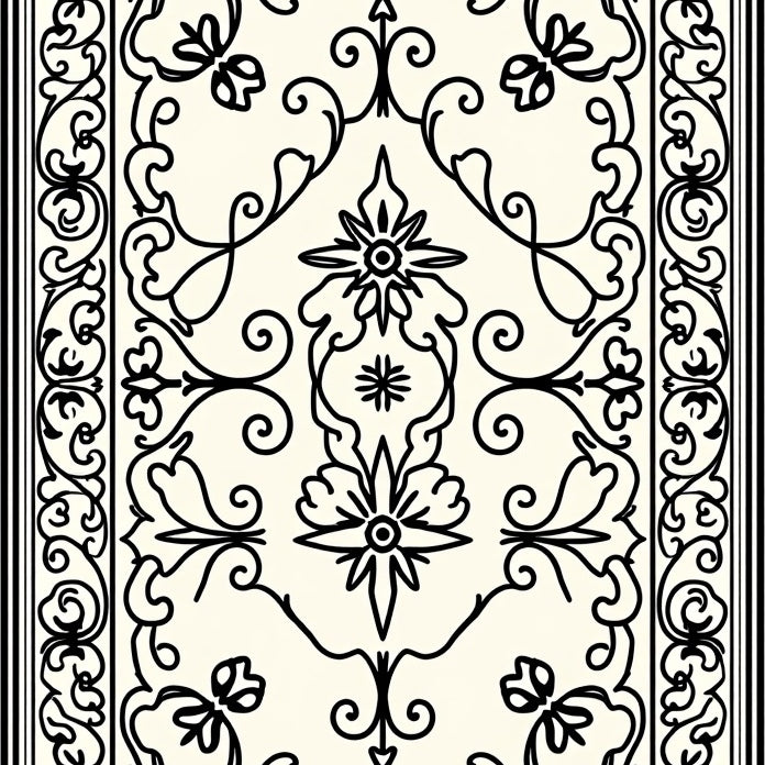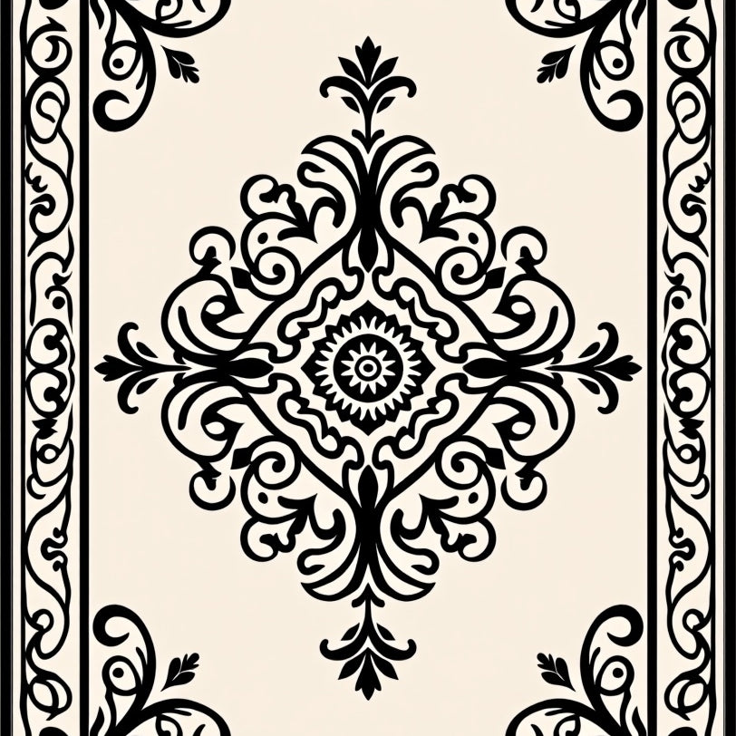 Ornate Scroll Medallion with Intricate Flourish Details(Black)