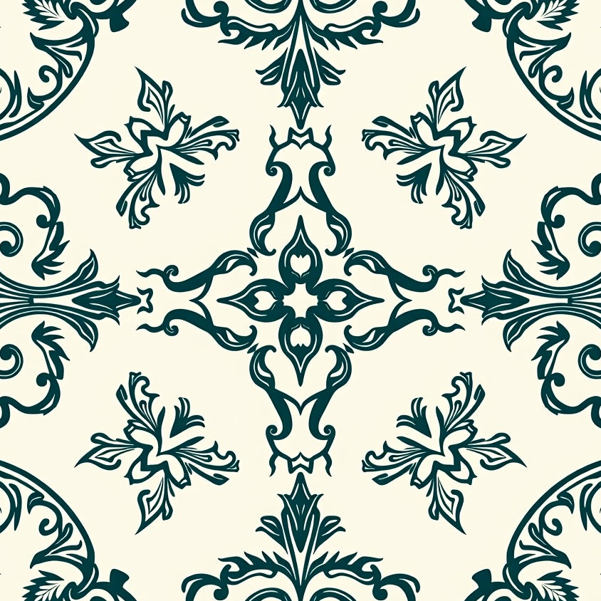 Vintage Damask Scroll with Paisley Accent Details(Ivory)