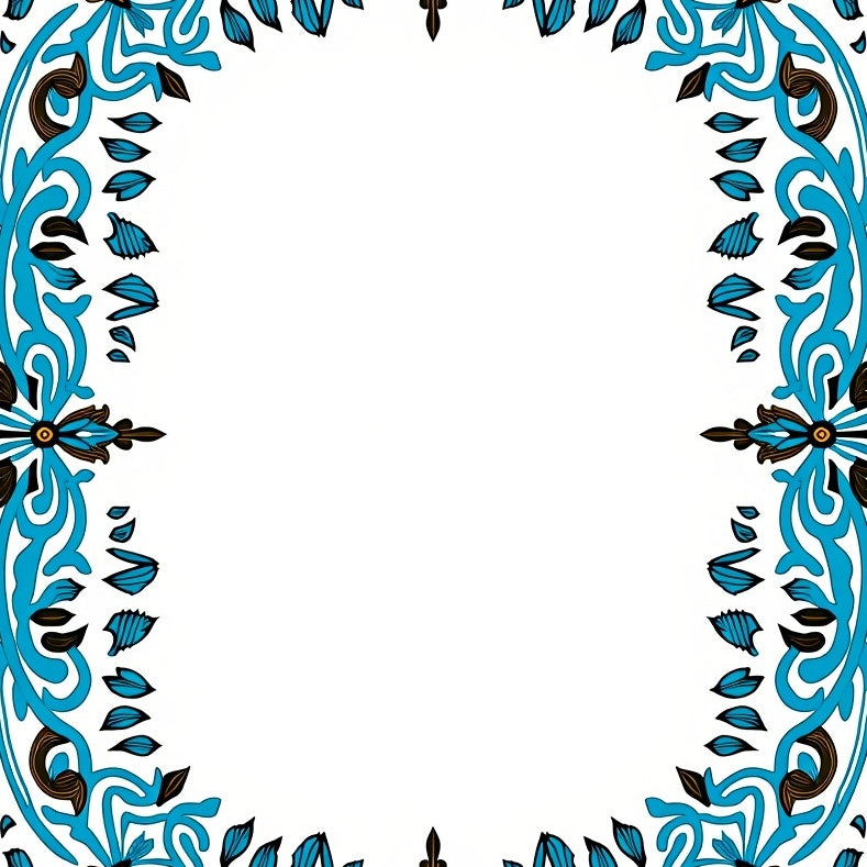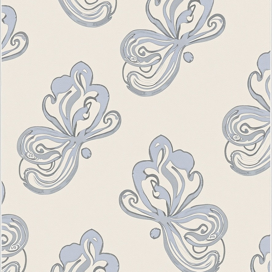 Oceanic Fleur Arabesque With Whimsical Foliage Ornaments(Blue)