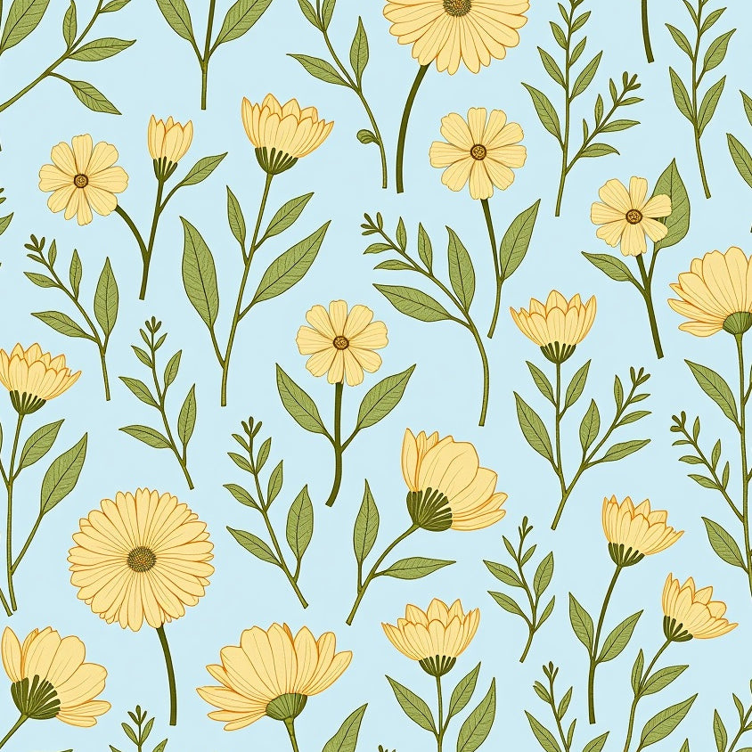 Enchanted Garden Botanical Vintage Inspired Artistic Motif(Sky Blue)