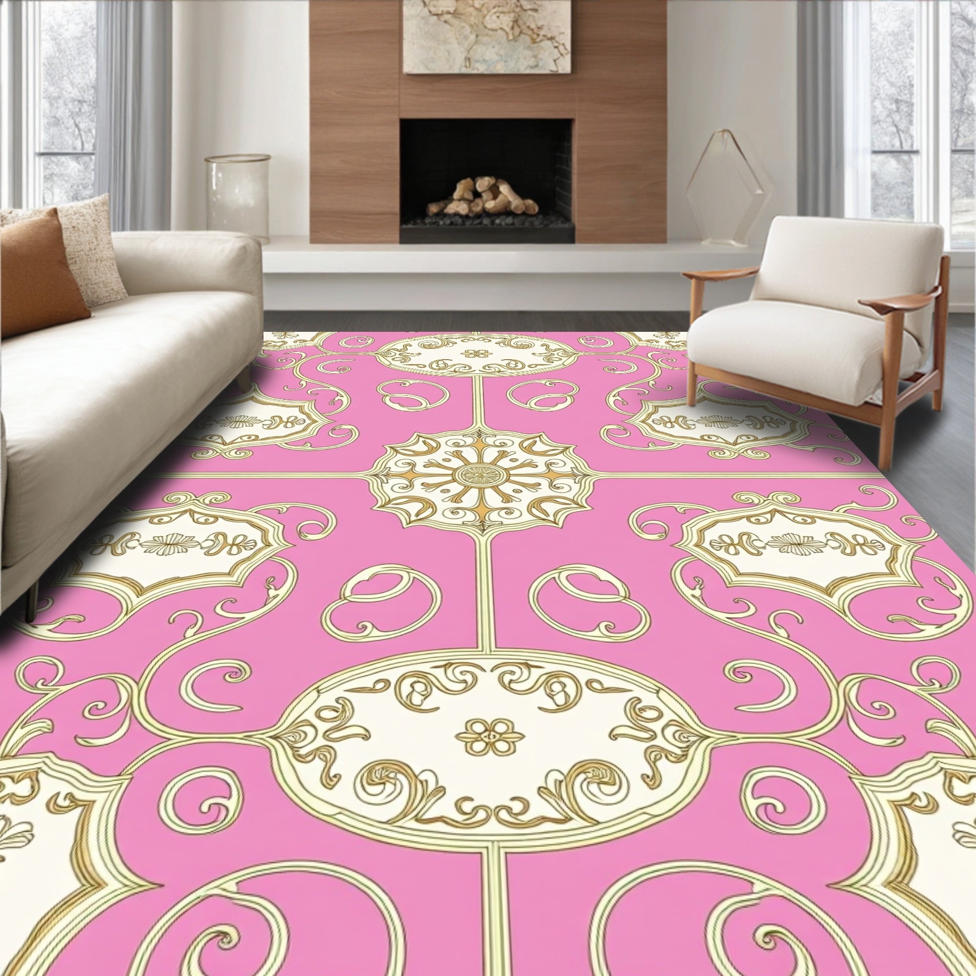 Baroque Scrollwork Medallion Design Floor(Pink)