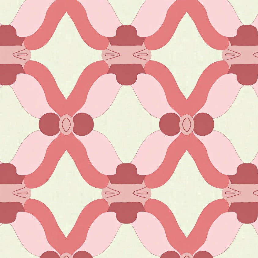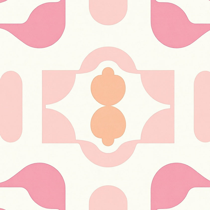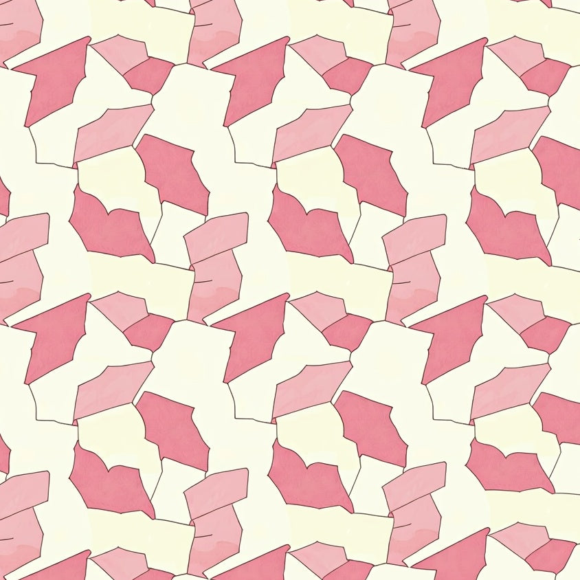 Hexagonal Mosaic Contemporary with Interconnected Shapes(Pink)