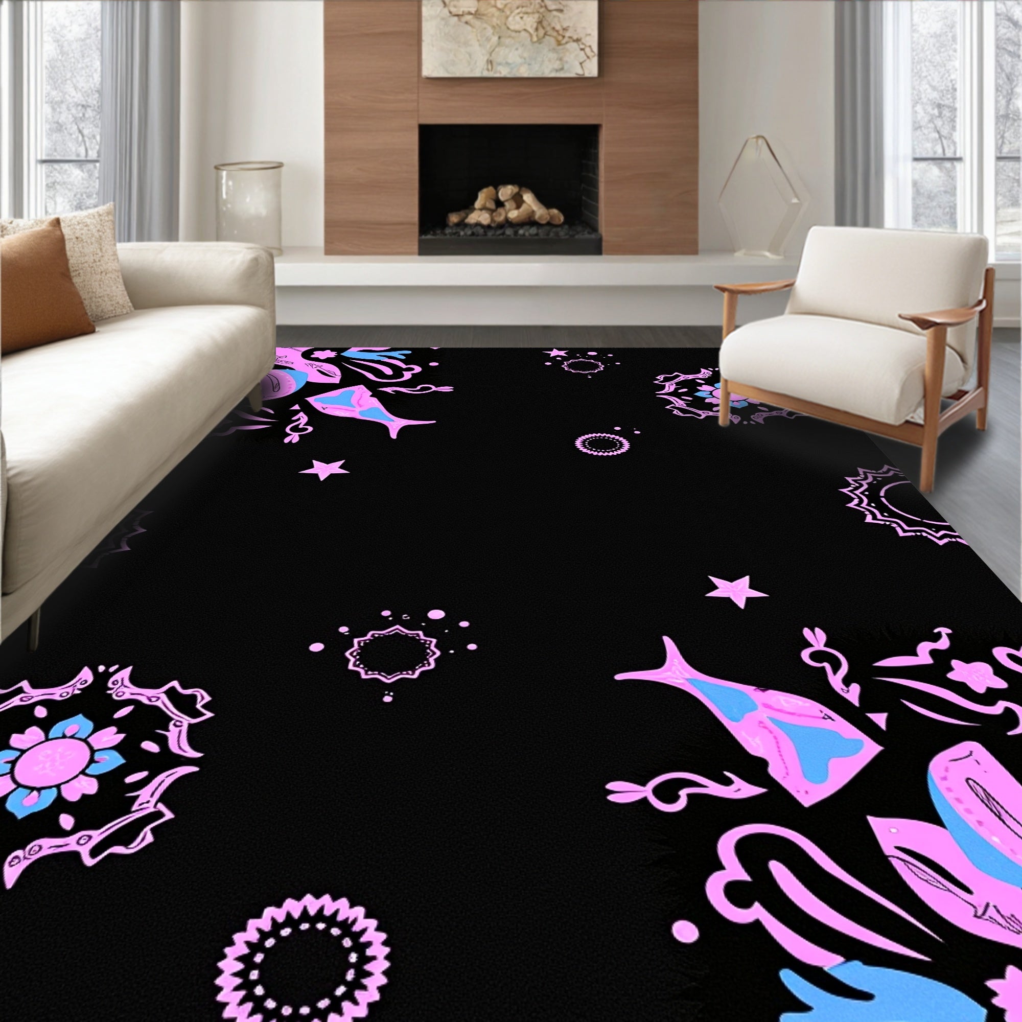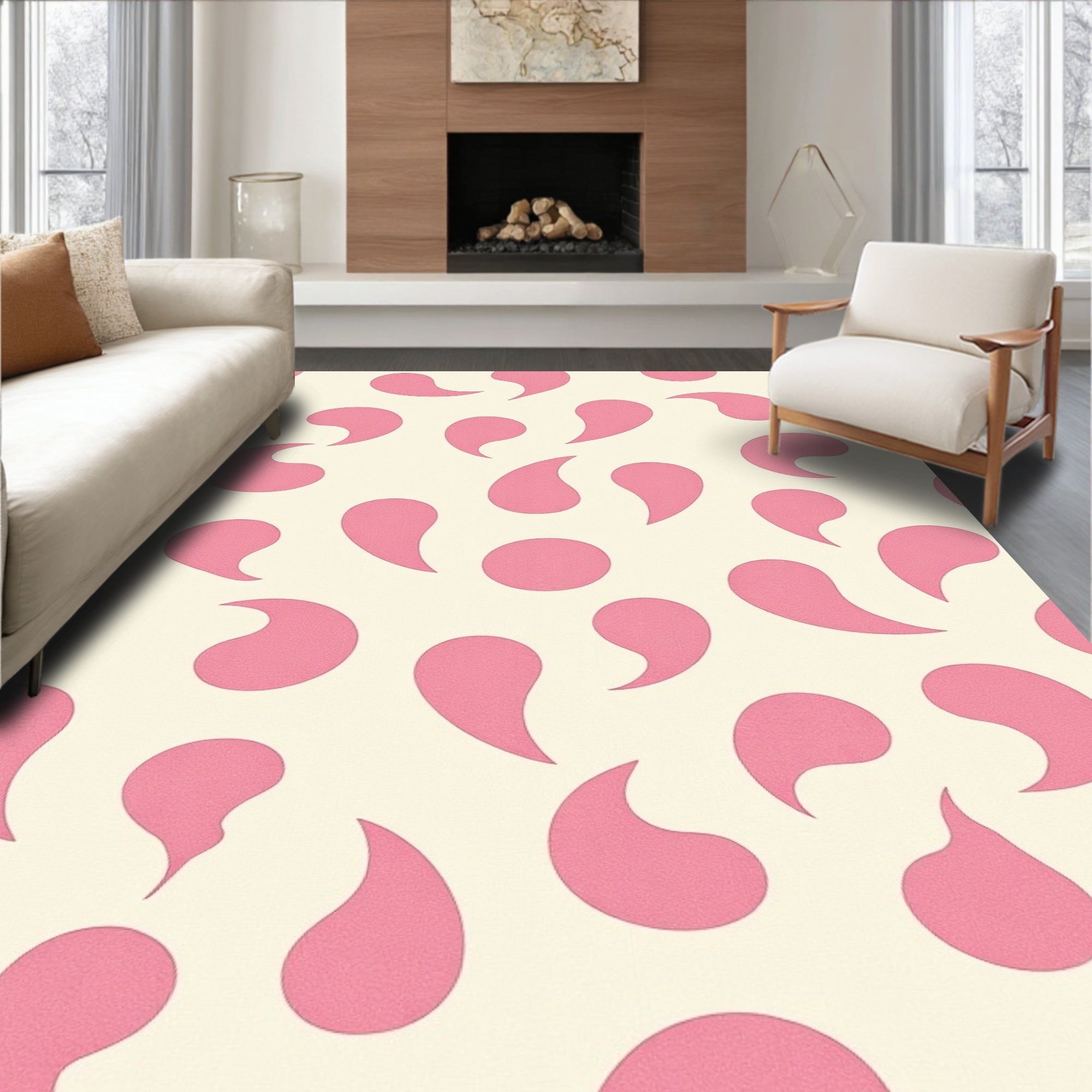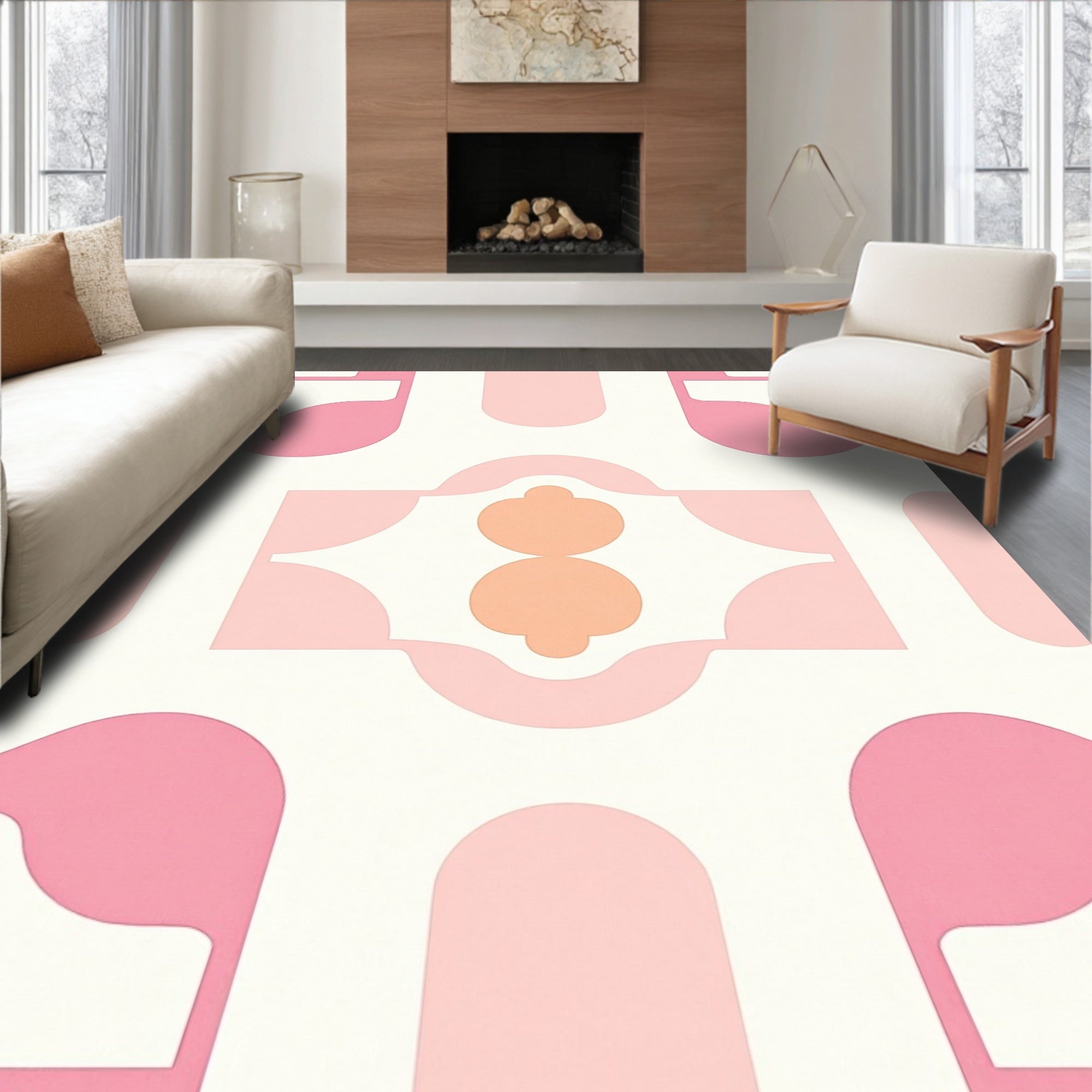 Retro Curved Motif Abstract Minimalist Decorative Floor Covering(Pink)
