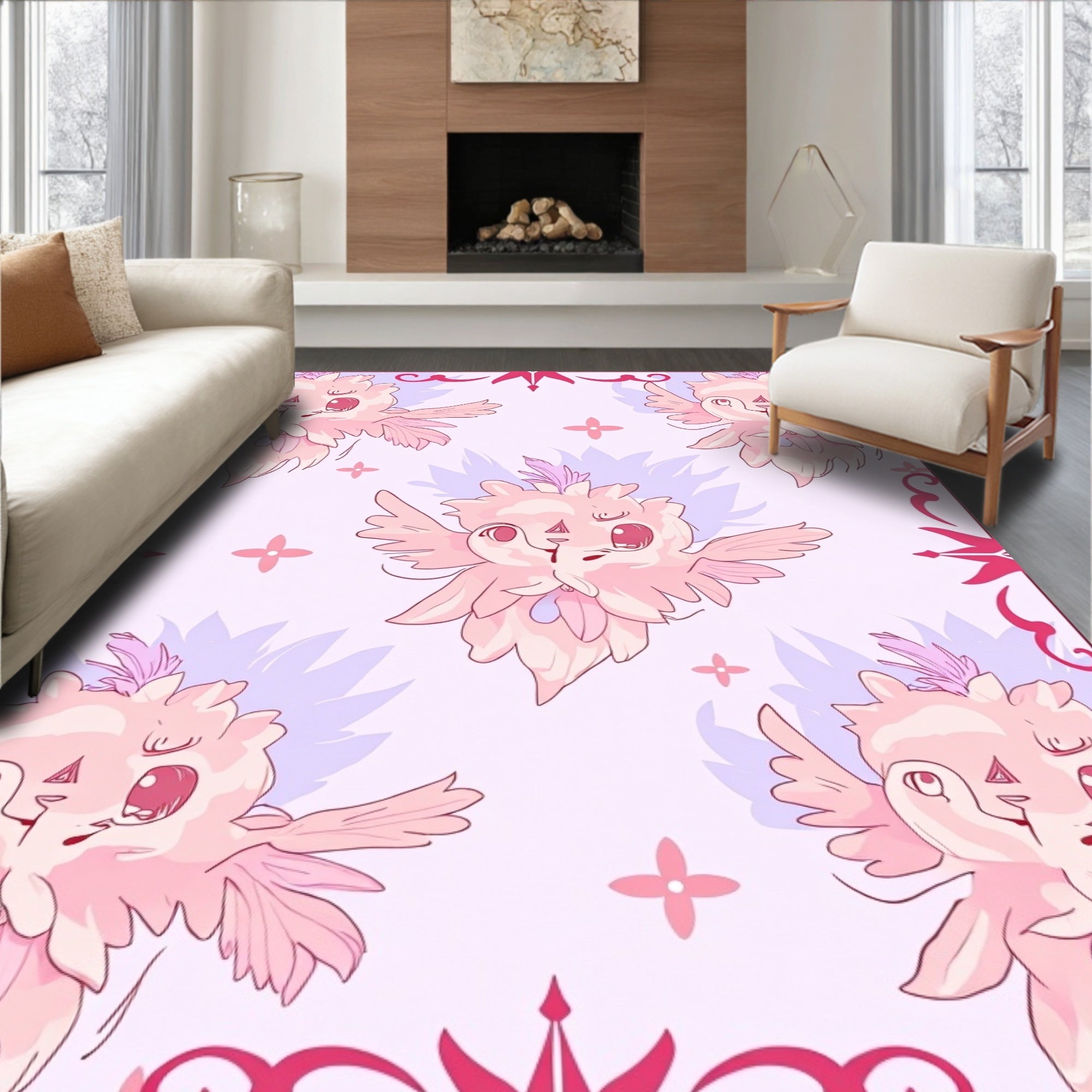 Mystical Folklore Storybook Whimsy Flying Beast Watercolor Illustration(Pink)