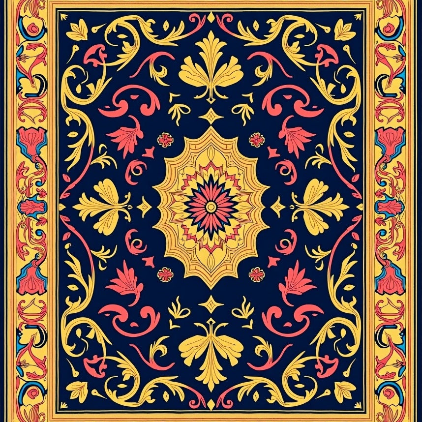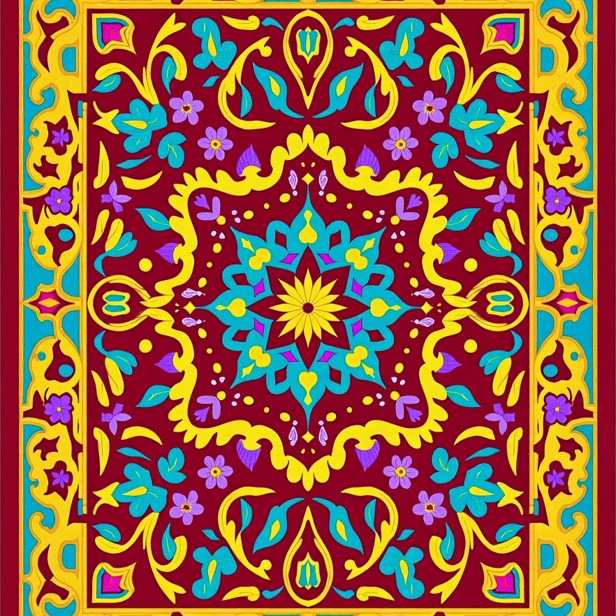 Vintage Medallion Heritage Boho Floral Ornate Symmetrical Décor(Red)