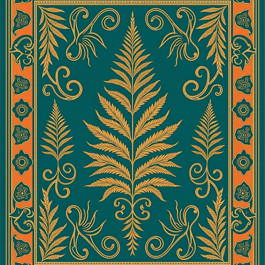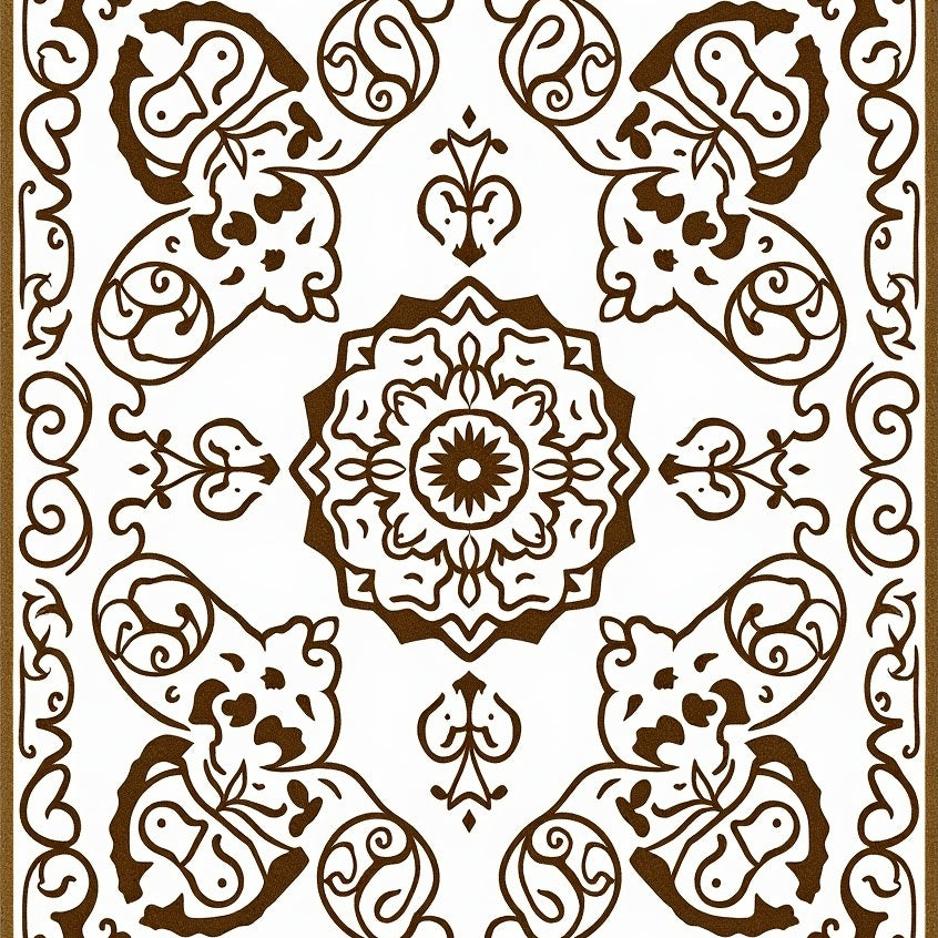 Paisley Cascade with Ornamental Border Framework(Brown)