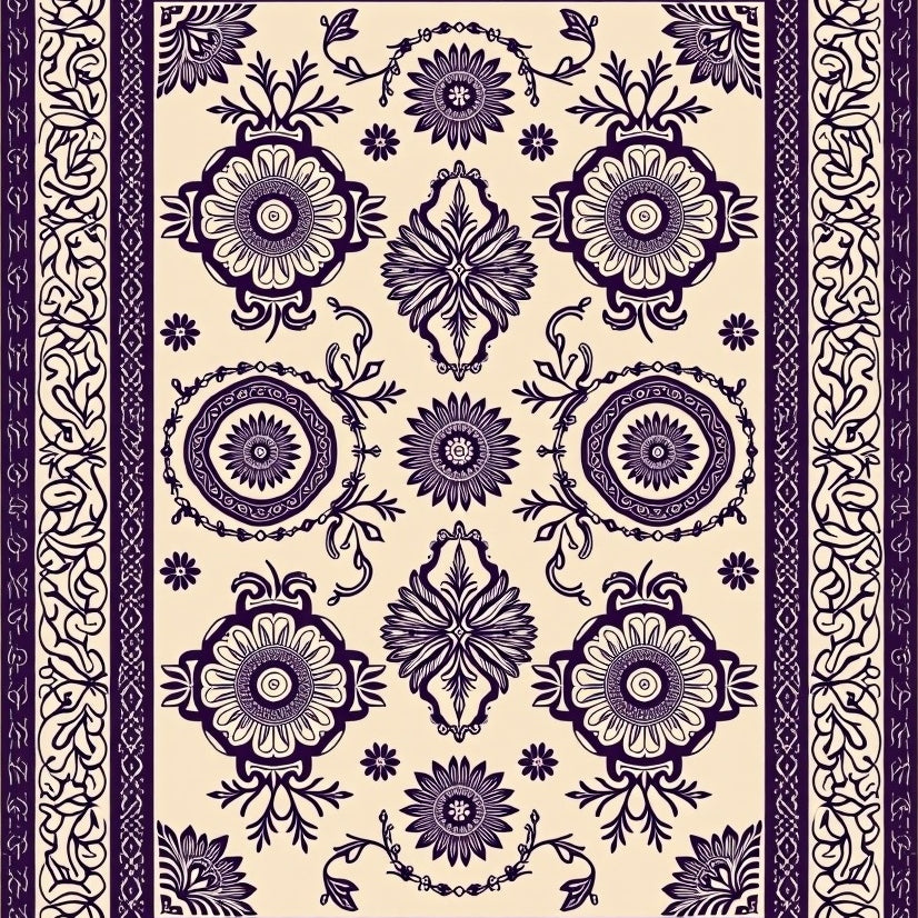 Vintage Medallion Scroll Herringbone Pathway Decoration(Blue)