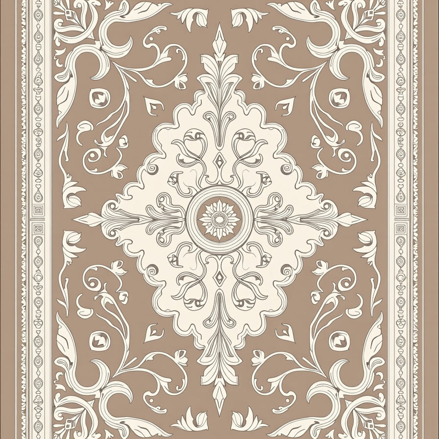 Damask Scrollwork Flourish Elegant Transitional Floor Covering(Brown)