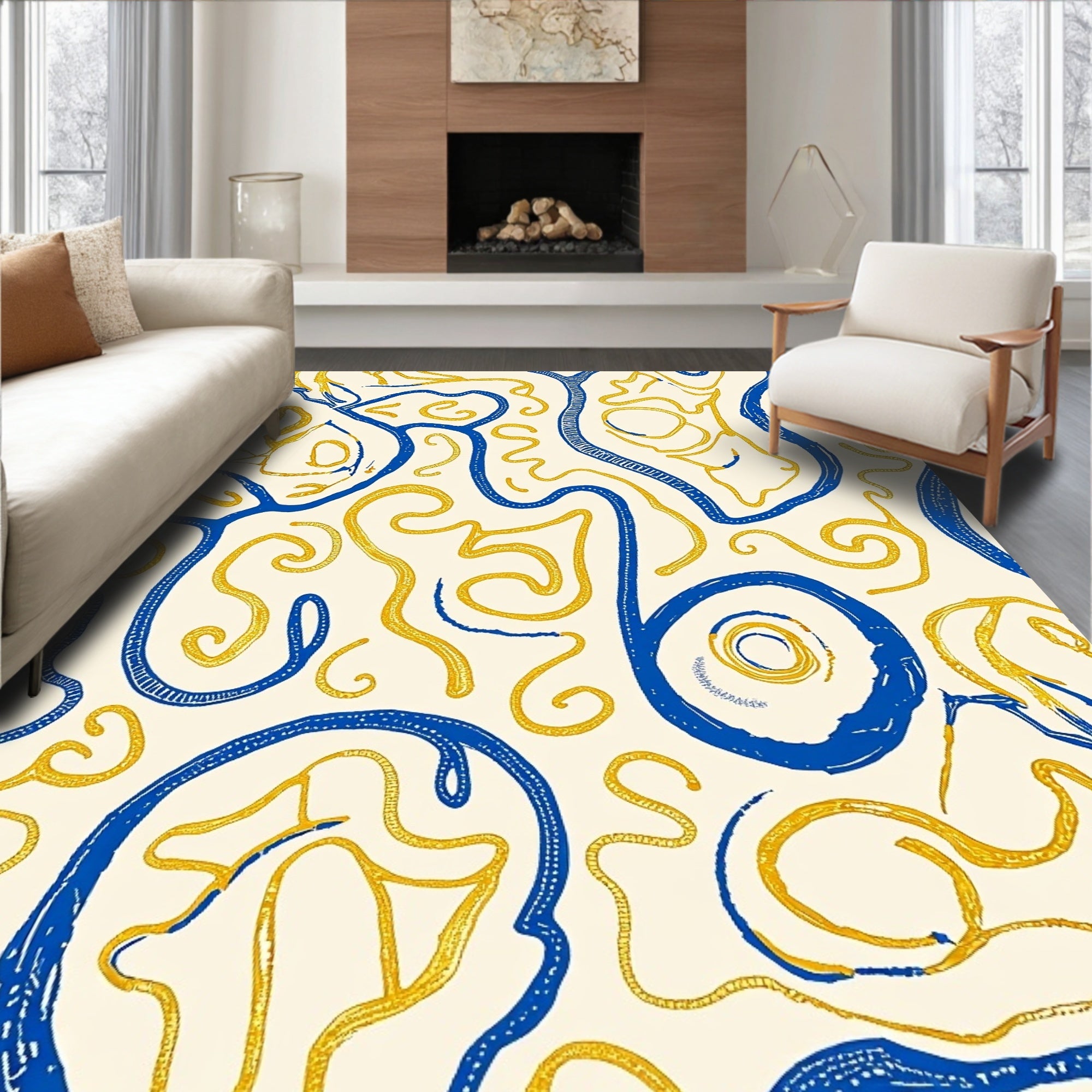Contemporary Interlocking Mosaic Featuring Abstract Artistry(Blue)