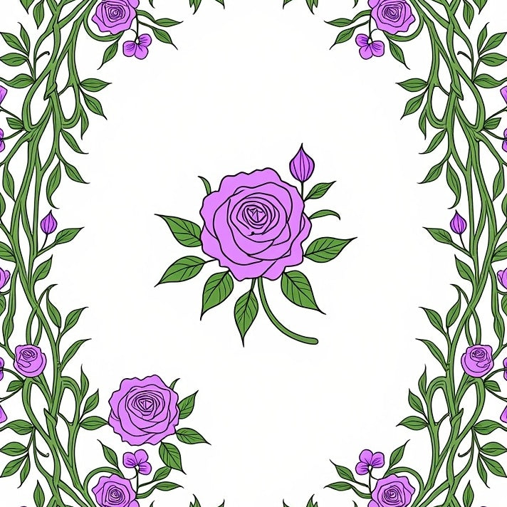 Botanical Garden Vine Trellis with Climbing Rose Illustrations(Purple)