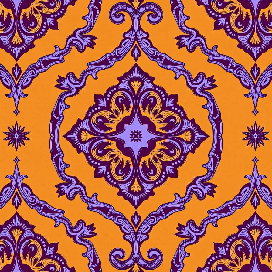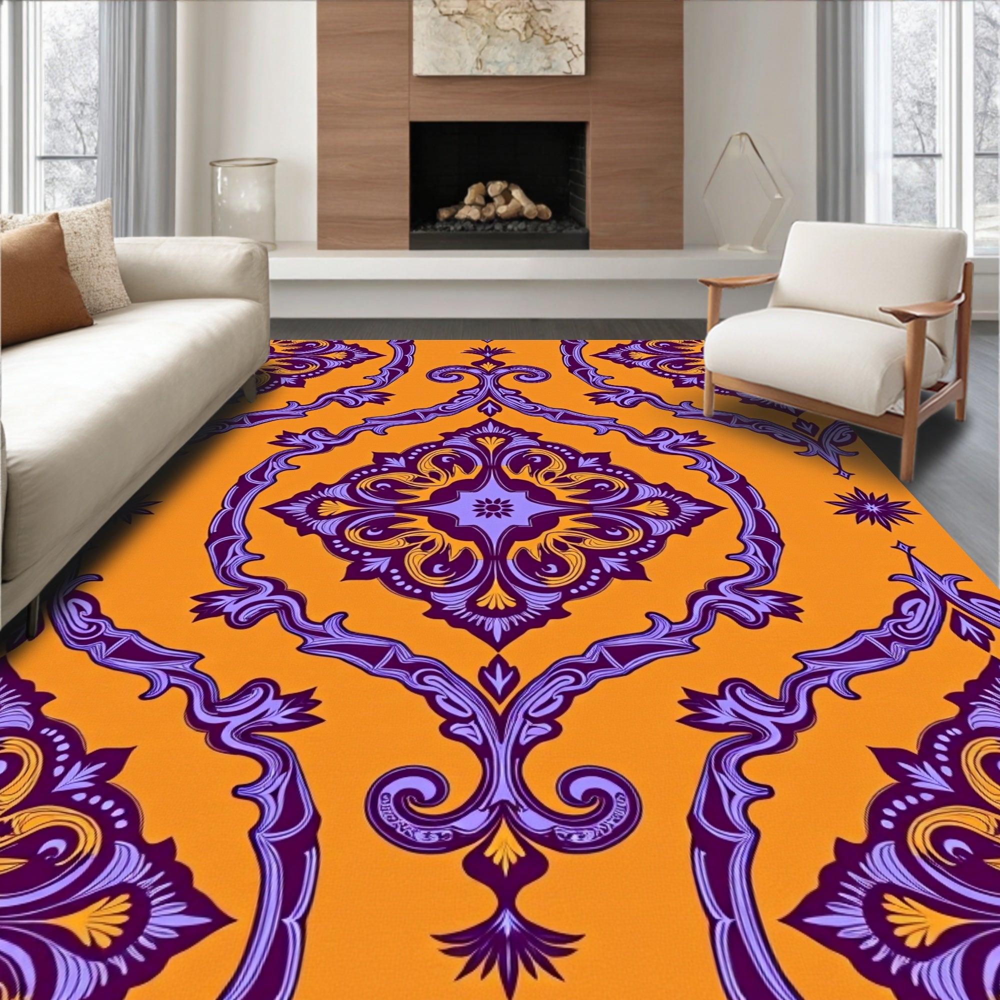 Distressed Damask Scrollwork with Classical European Elegance(Orange)