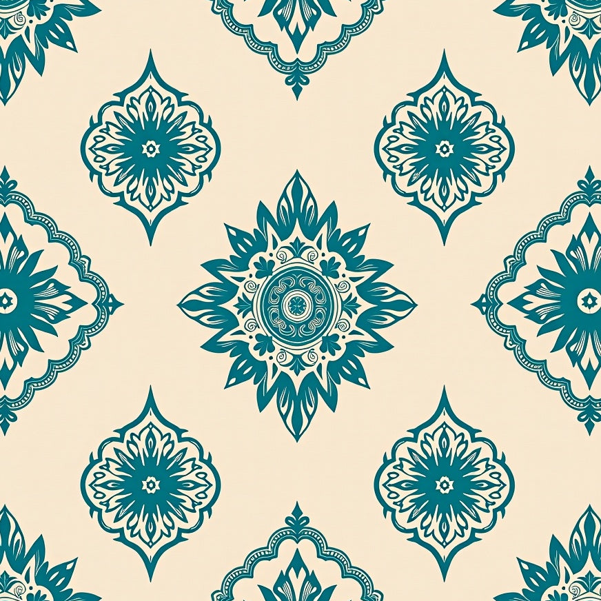 Elegant Distressed Damask Symmetrical Blossom(Teal)