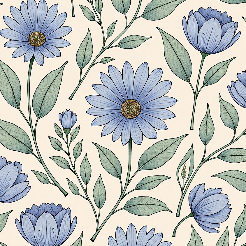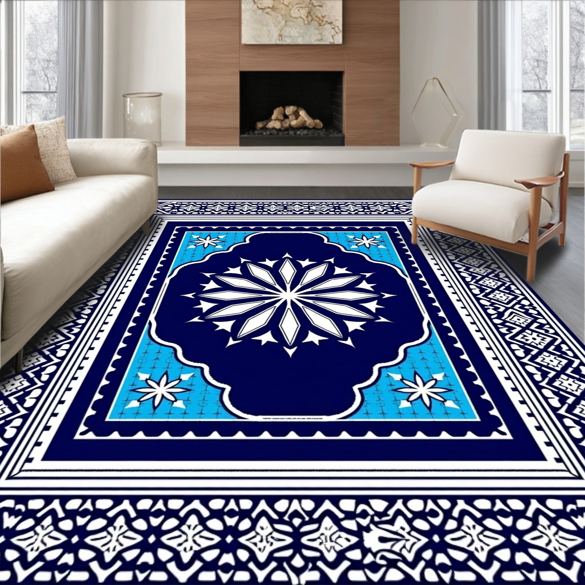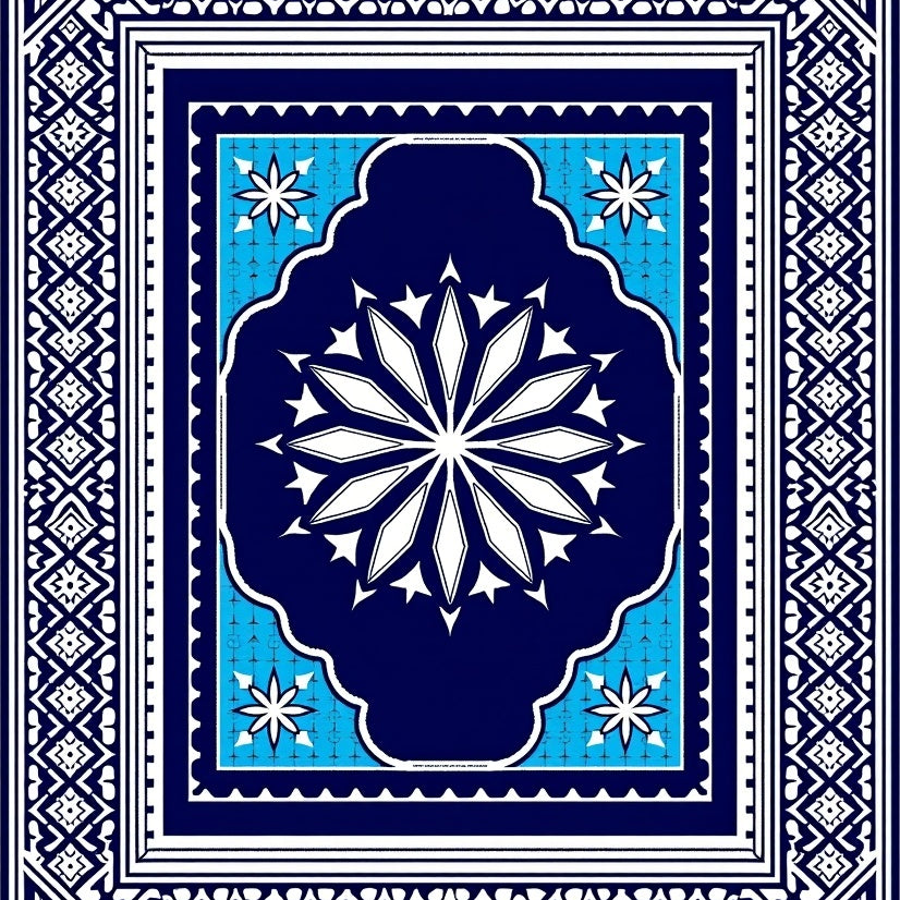 Retro Floral Medallion Motif with Distressed Ornate Botanical Detailing(Blue)