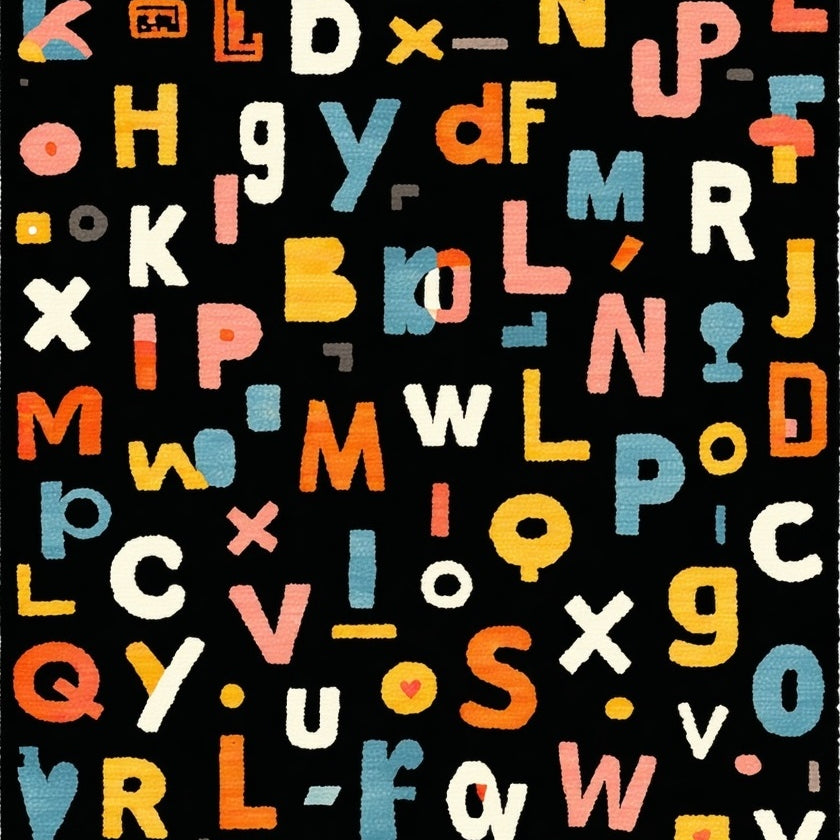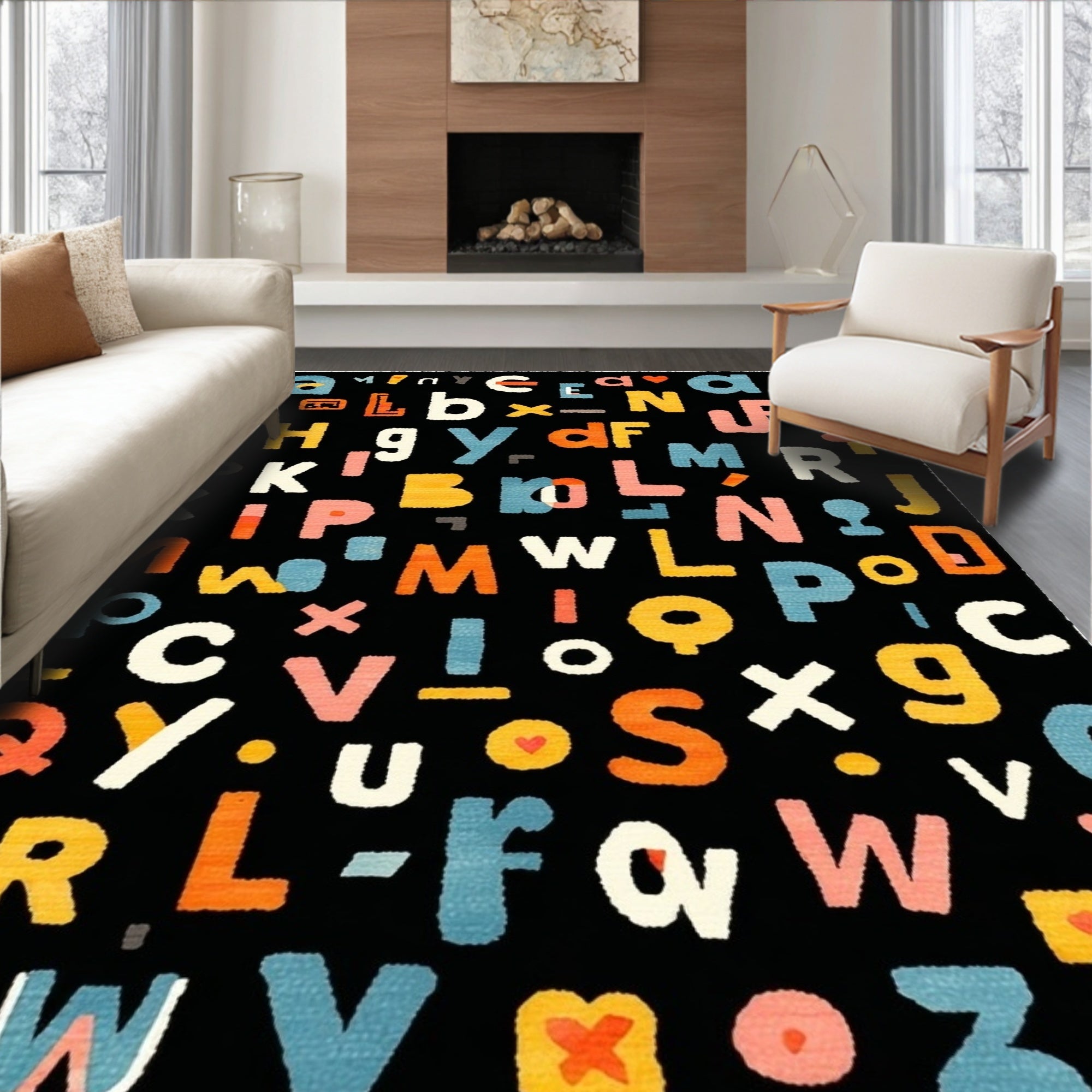 Whimsical Alphabet Fun Rug Playful Multi Color ABC Type Black Decorative Carpet(Black)
