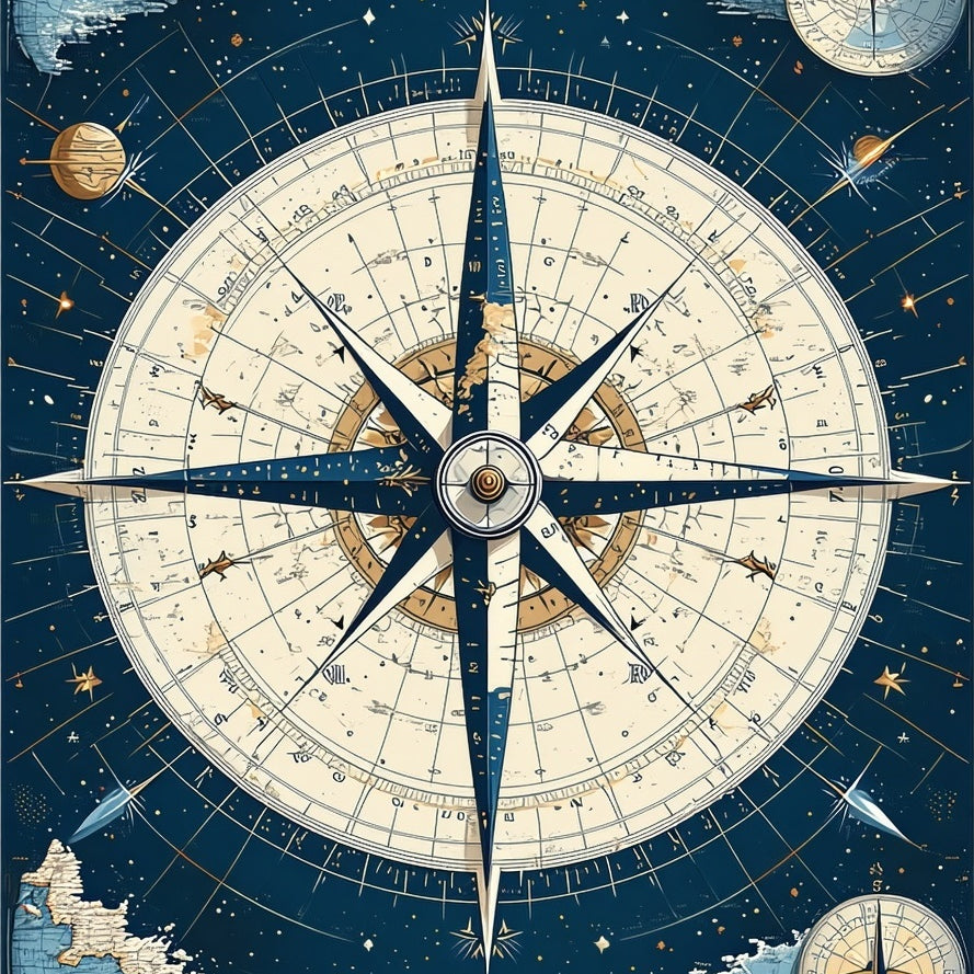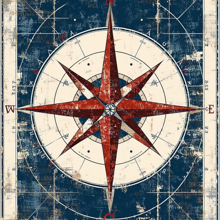 Coastal Navigation Hand Tufted Transitional Compass Rose Area Rug for Deck(Blue)