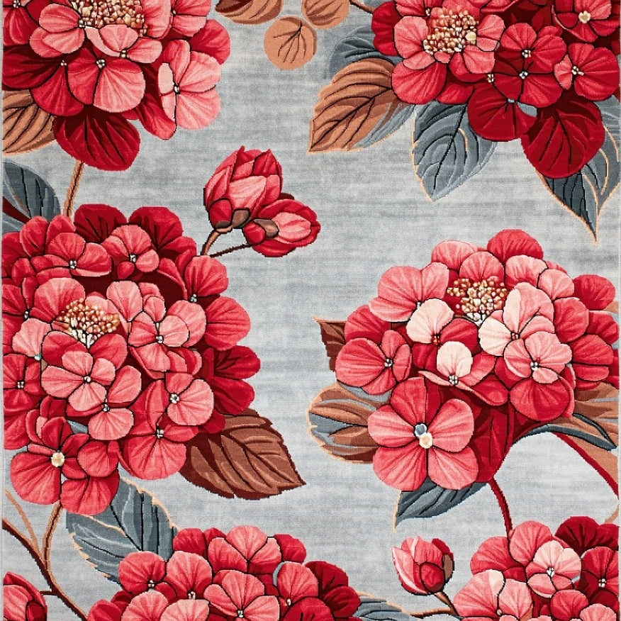 Botanical Hydrangea Bloom Area Rug with Crimson Floral Pattern for Patio(Gray)