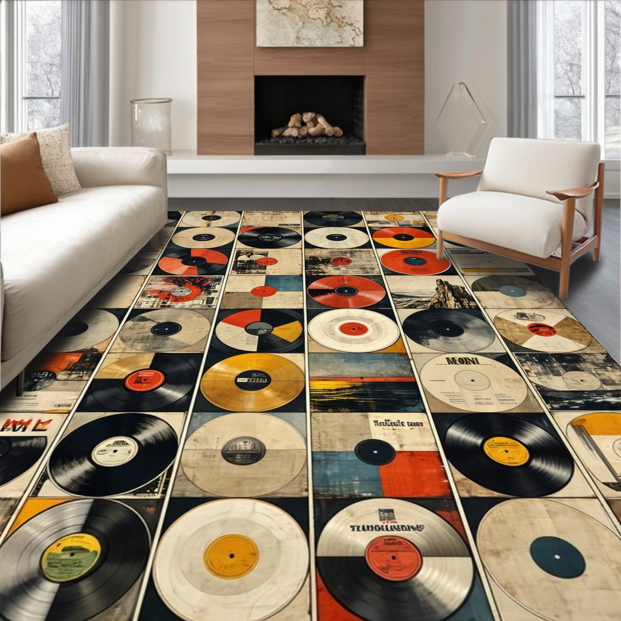 Modern Music Decor Area Rug Featuring Retro Album Covers(Black)